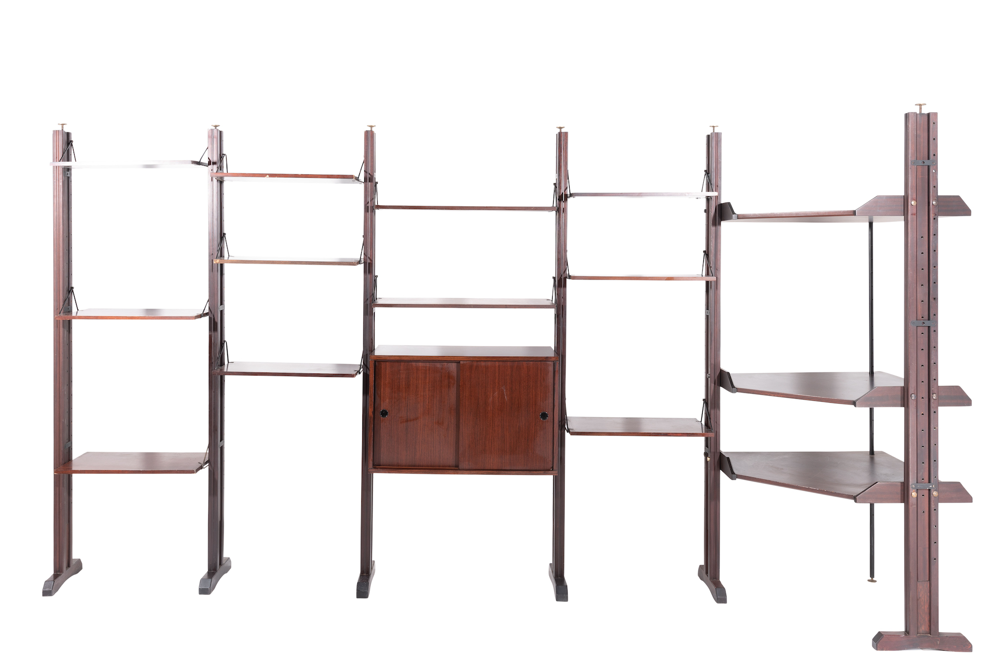 Significant surface scratches and marks to shelving and cabinet, as well as paint losses and rust to shelf connectors, all consistent with age and use. The wall unit is structurally sound. It is missing one shelf.