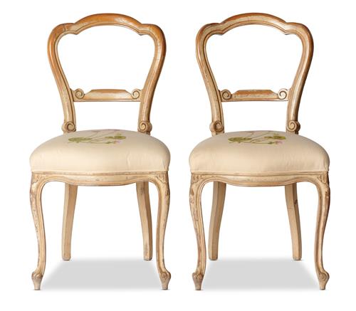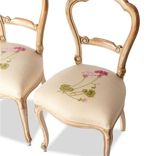 Original painted finish, embroided french cotton fabric with geranium motif.