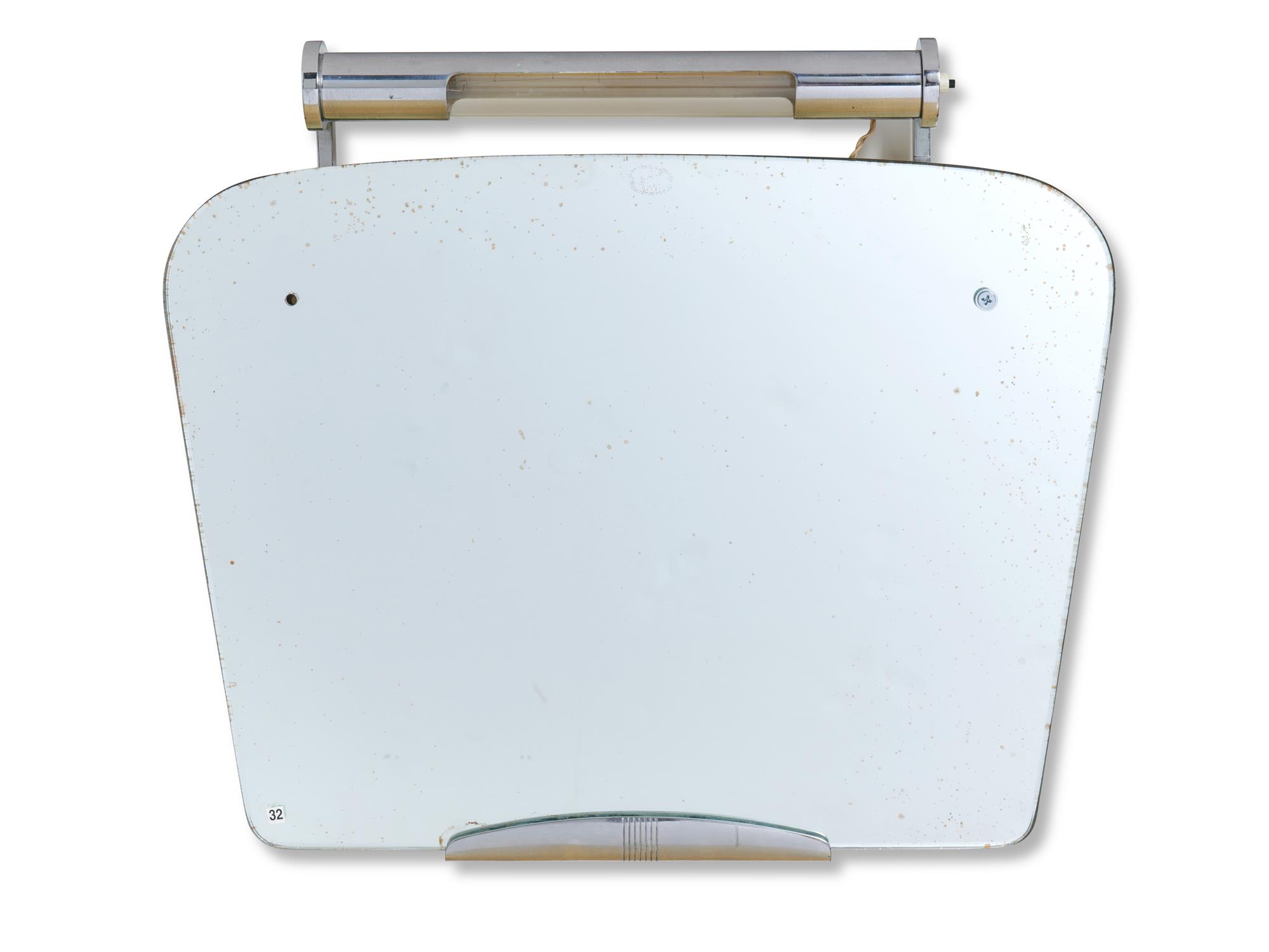 Losses to original mirror patina. Losses to nickel plated frame and light consistent with age and previous use.