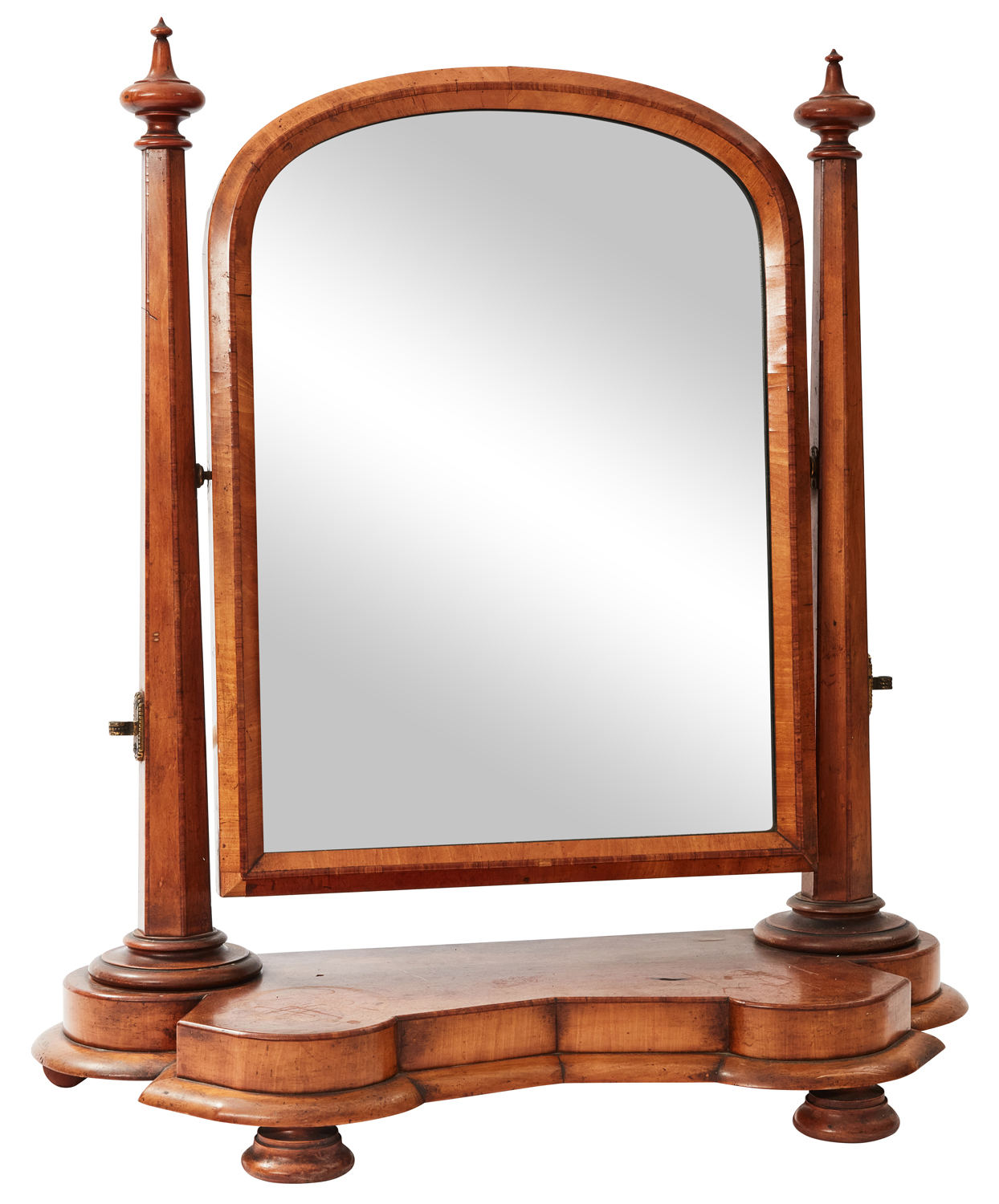 A VICTORIAN SATIN BIRCH TOILET MIRROR