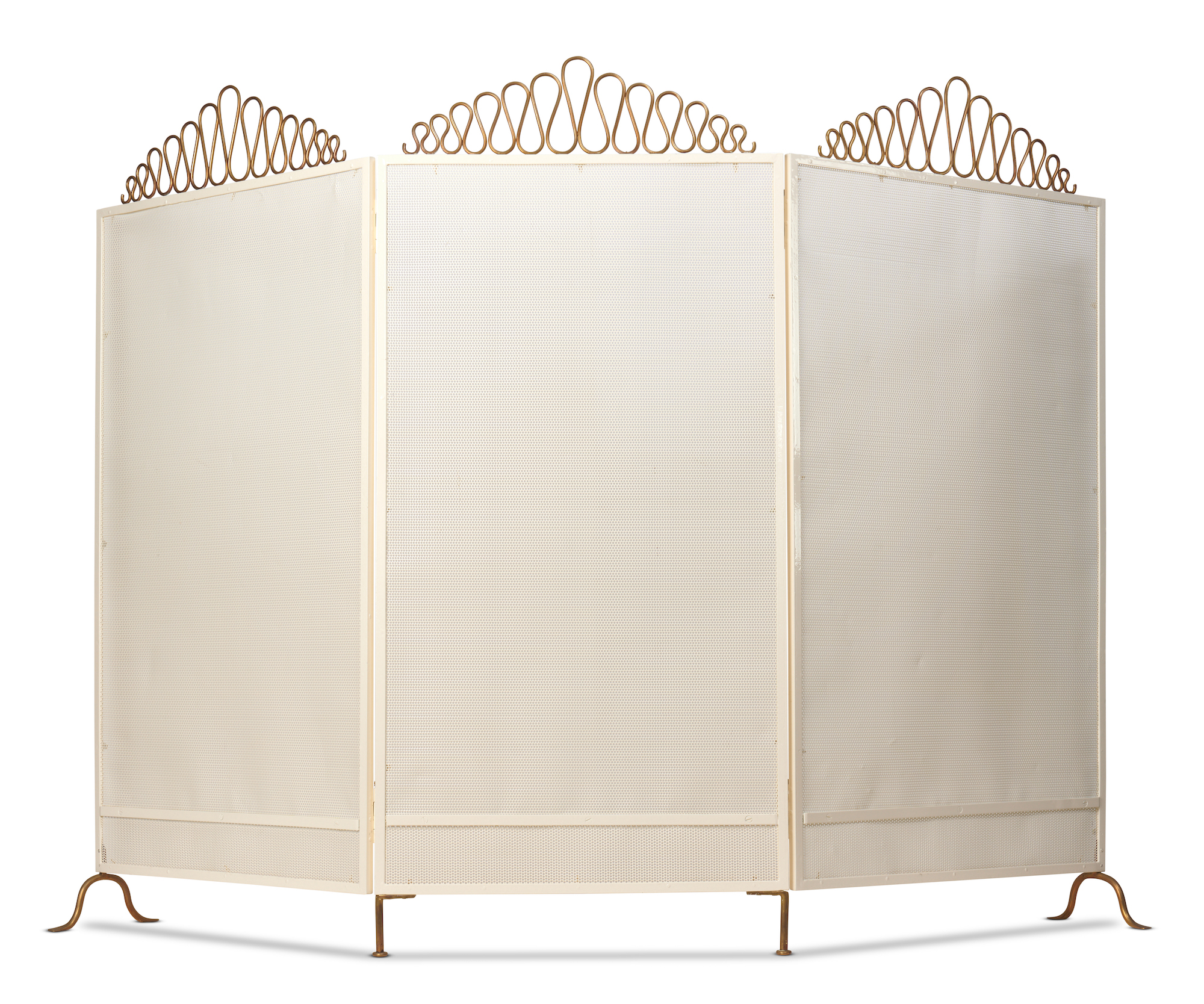 Some warping to perforated panels. Screen structurally sound and recently powder coated in cream.