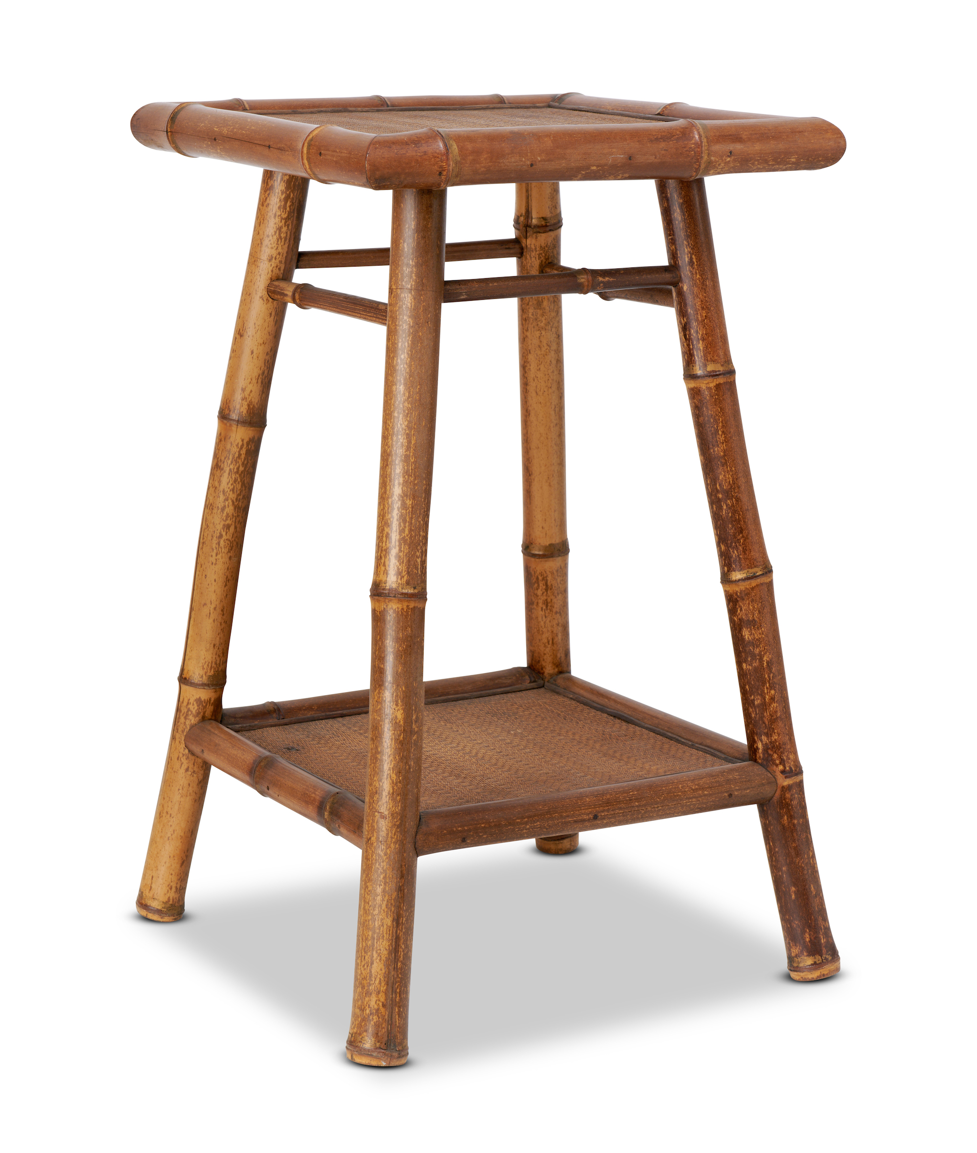 Significant fading and losses to bamboo, with heat cracks to legs. Overall original condition and structurally sound.