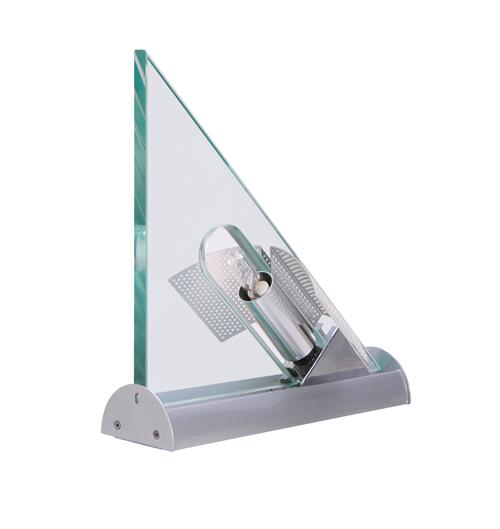 Glass, perforated metal and steel.