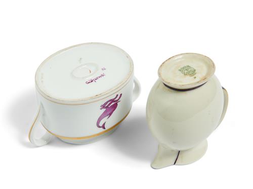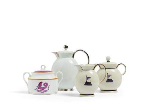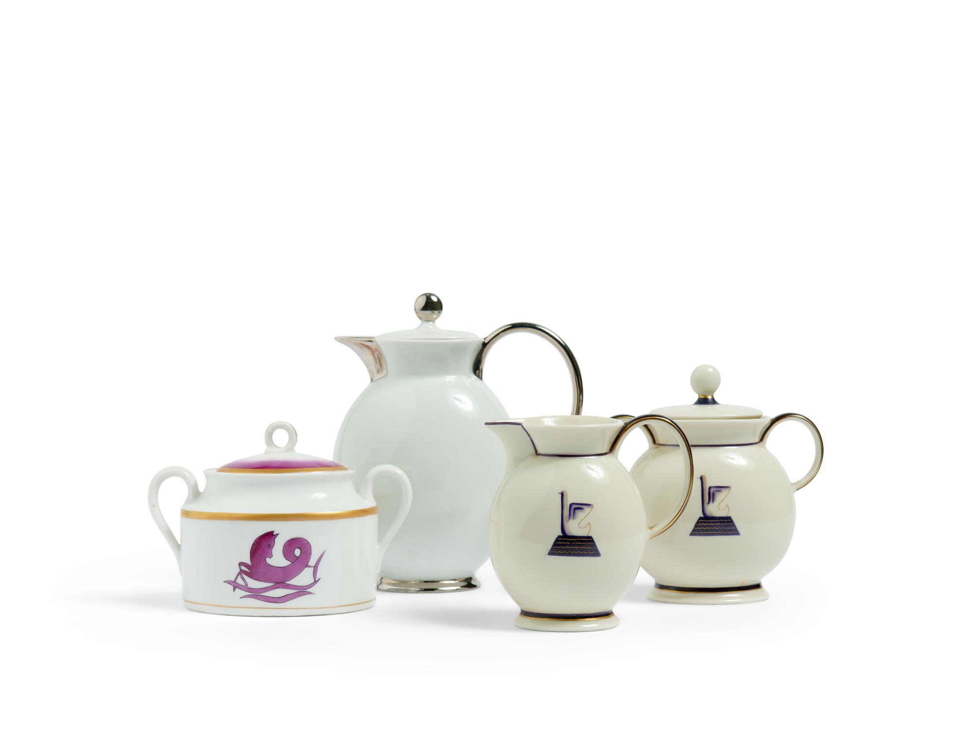 Sugar bowl by Richard Ginori. Tea pot by Verbano Laveno. Sugar & creamer by Guido Andlouvitz for Verbano Laveno.