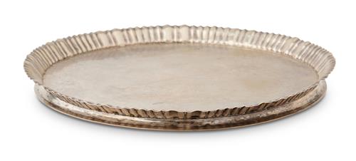 Solid silver 800, with decorative pie crust edge. (Pre 1922 silver mark).