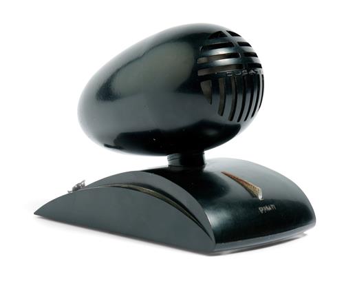 Some rust to microphone button. Minor surface scratches to bakelite consistent with age and previous use.