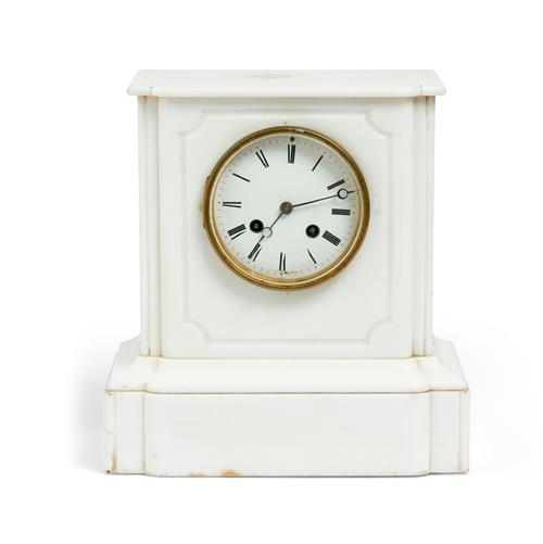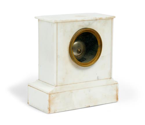 Minor fading and marks to marble consistent with age. Losses to brass patina and hairline cracks to clock face. Overall structurally sound.