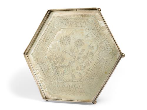 Silver plate on round feet (stamped to base).