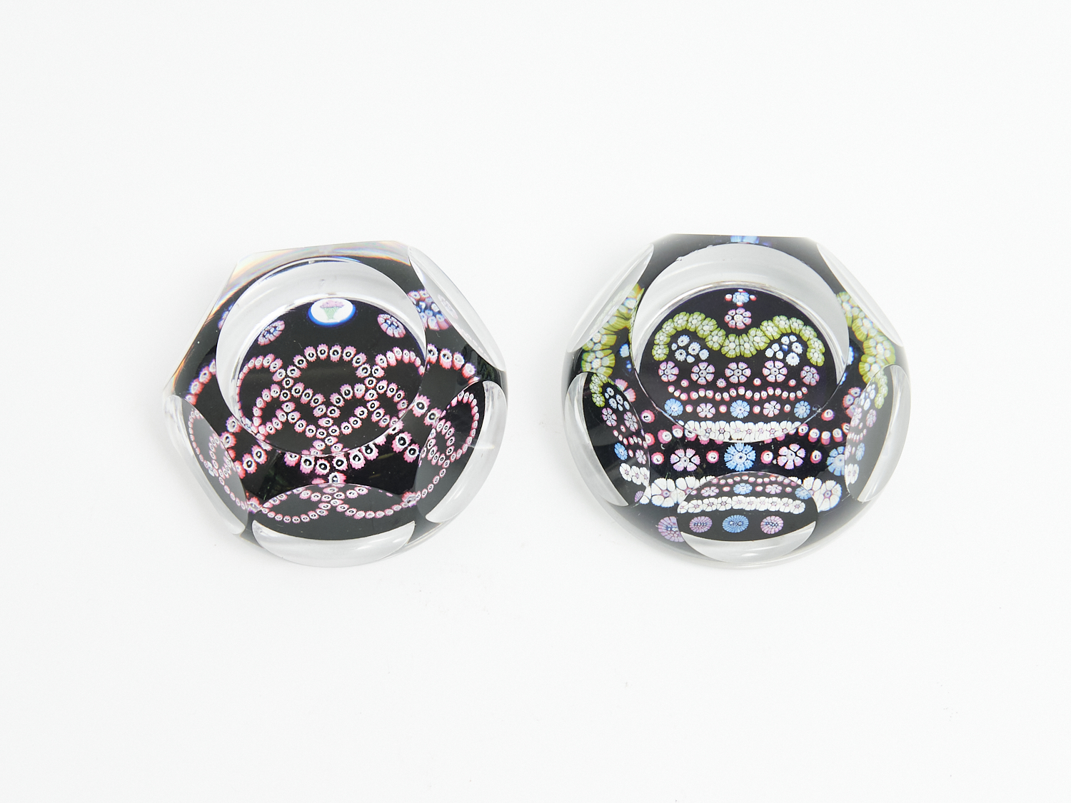 TWO WHITEFRIARS FACETED GLASS PAPERWEIGHTS, NUMBERED DIA.8 CM, LEONARD JOEL LOCAL DELIVERY: SMALL