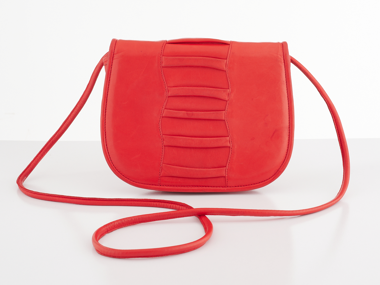 CHARLES JOURDAN, RED SATCHEL BAG - Styled in red leather, with front flap and rolled leather strap.