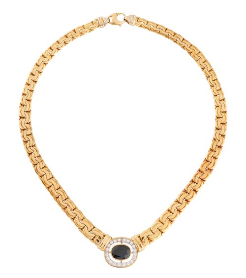 18CT GOLD, SAPPHIRE AND DIAMOND NECKLACE, ITALIAN