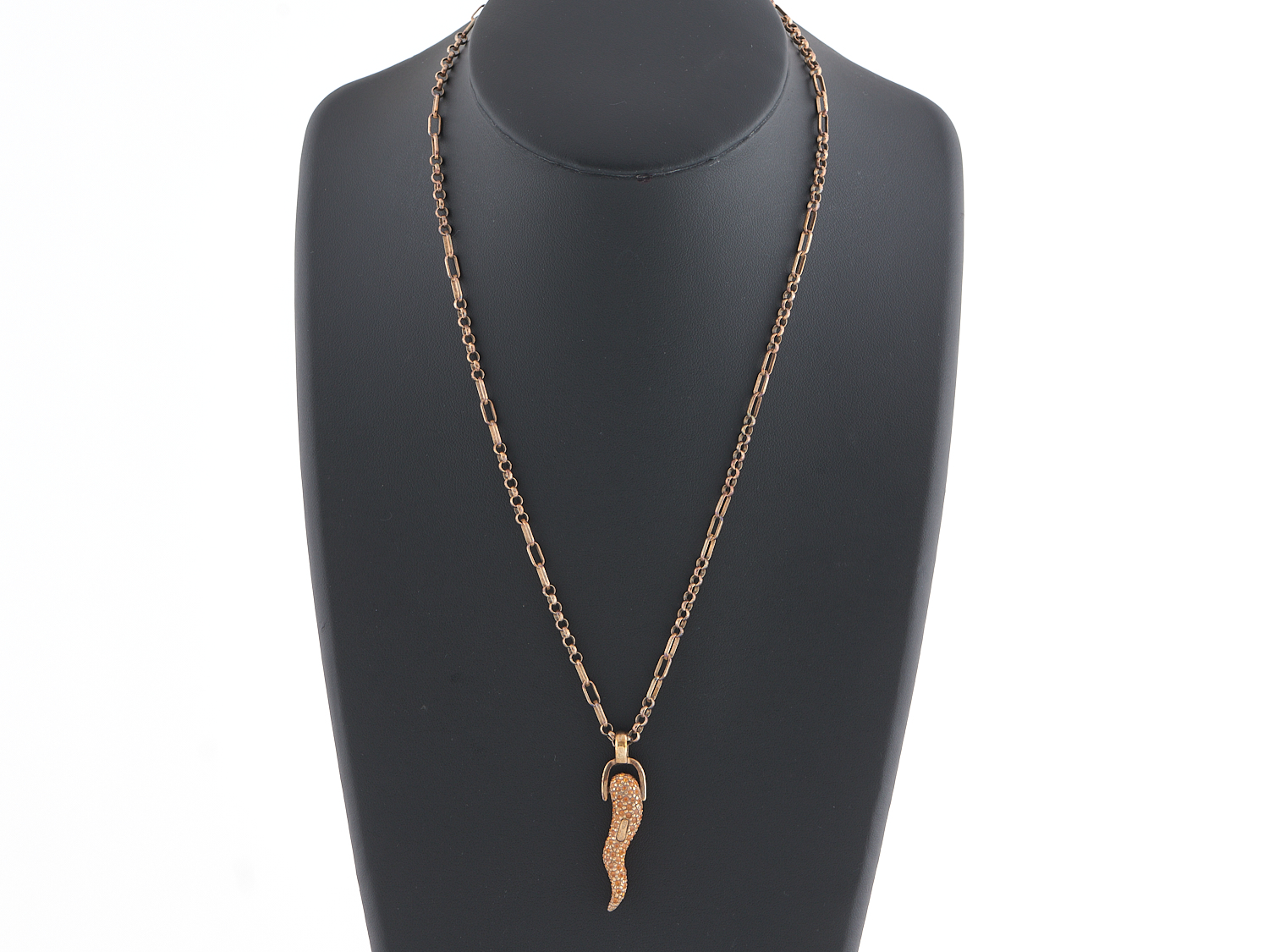 DOLCE GABBANA, GOOD LUCK PENDANT NECKLACE - The horn of plenty pendant styled with crystal detail, to a conforming chain in gold tone metal.