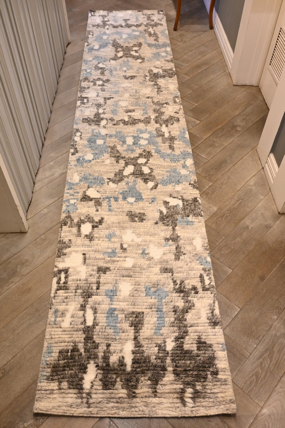 A BRAND-NEW MOROCCAN BERBER RUNNER. 100% WOOL PLUSH PILE, HANDLOOMED IN MULTI COLOUR TONES. SIZE: 396 X 84 CM ORIGIN: INDIA - RRP: $1,200