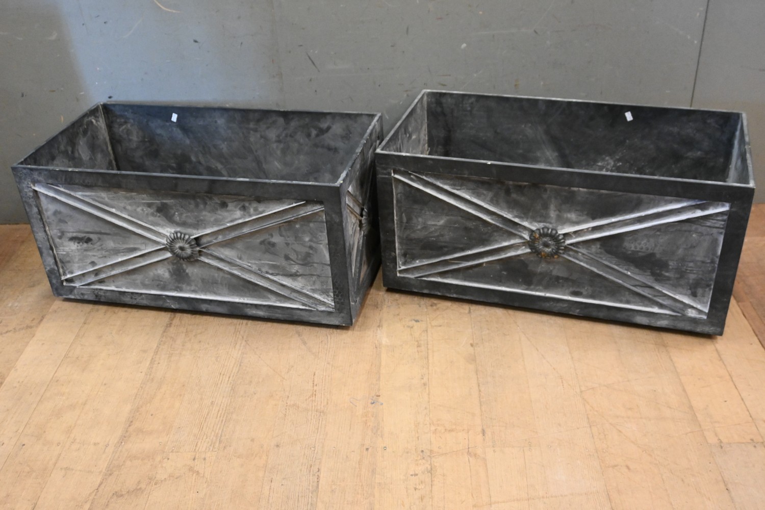 A PAIR OF LARGE METAL PLANTER BOXES (40H X 80W X 40D CM) (LEONARD JOEL DELIVERY SIZE: X-LARGE)