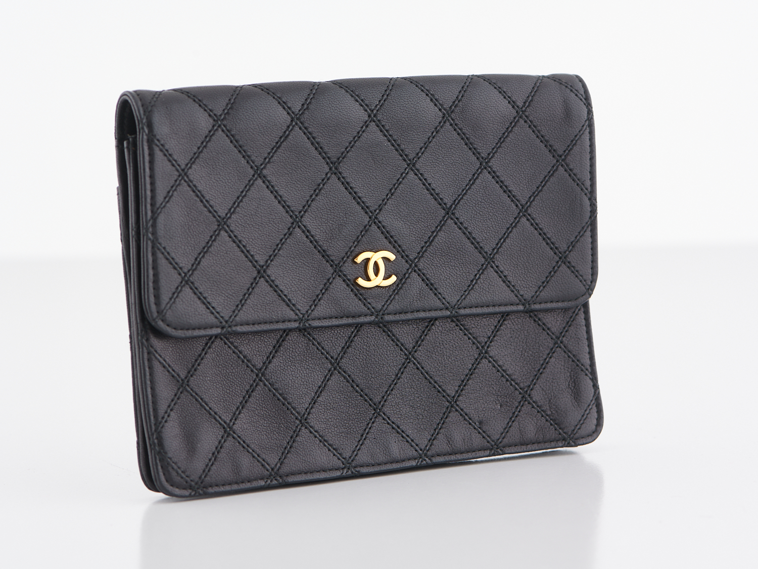 CHANEL, POUCH - Styled in diamond quilted lambskin, with CC logo detail, boxed.