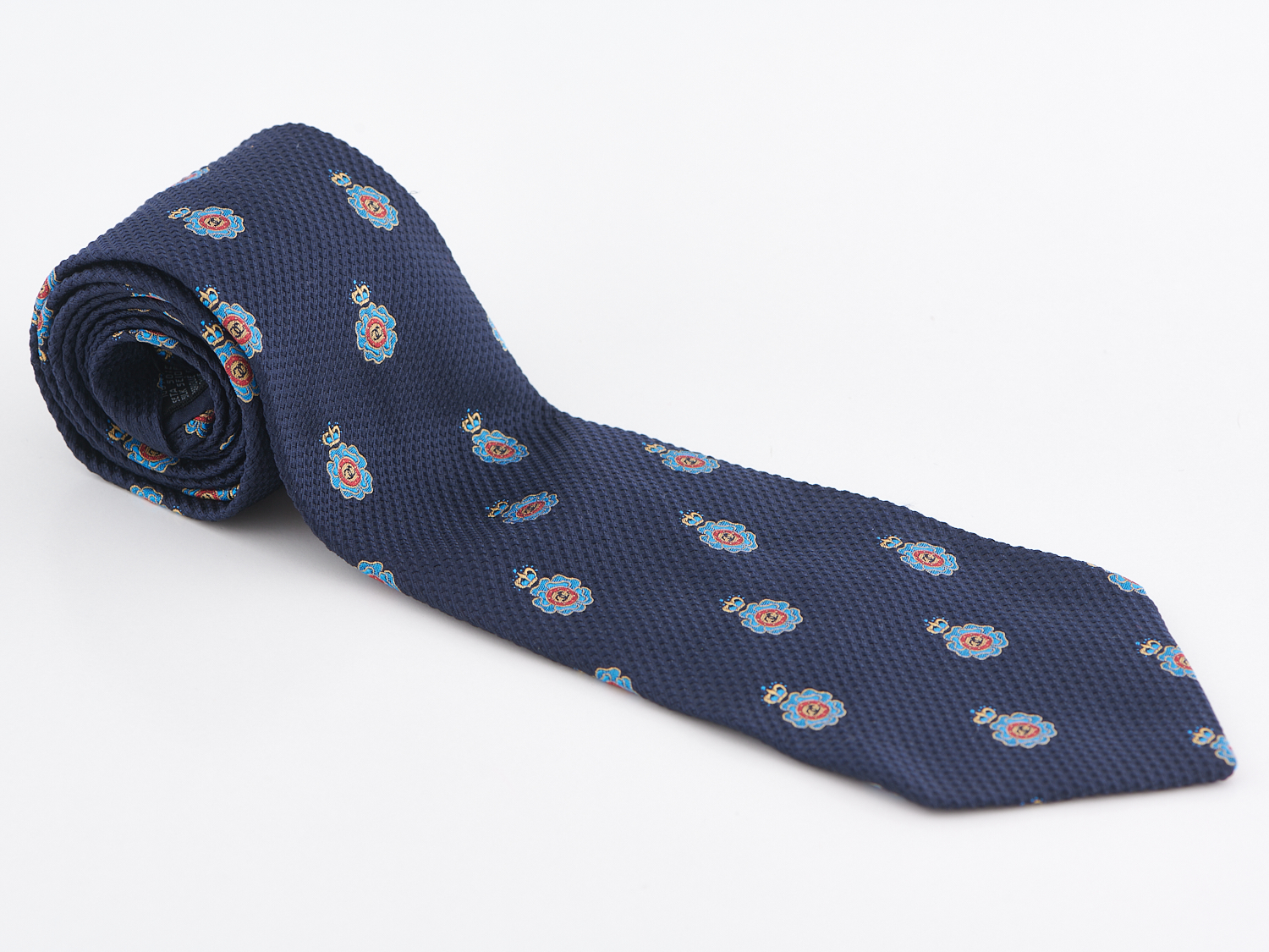 CHANEL, TIE - Styled in navy silk, with CC crowned camellia embroided detail.