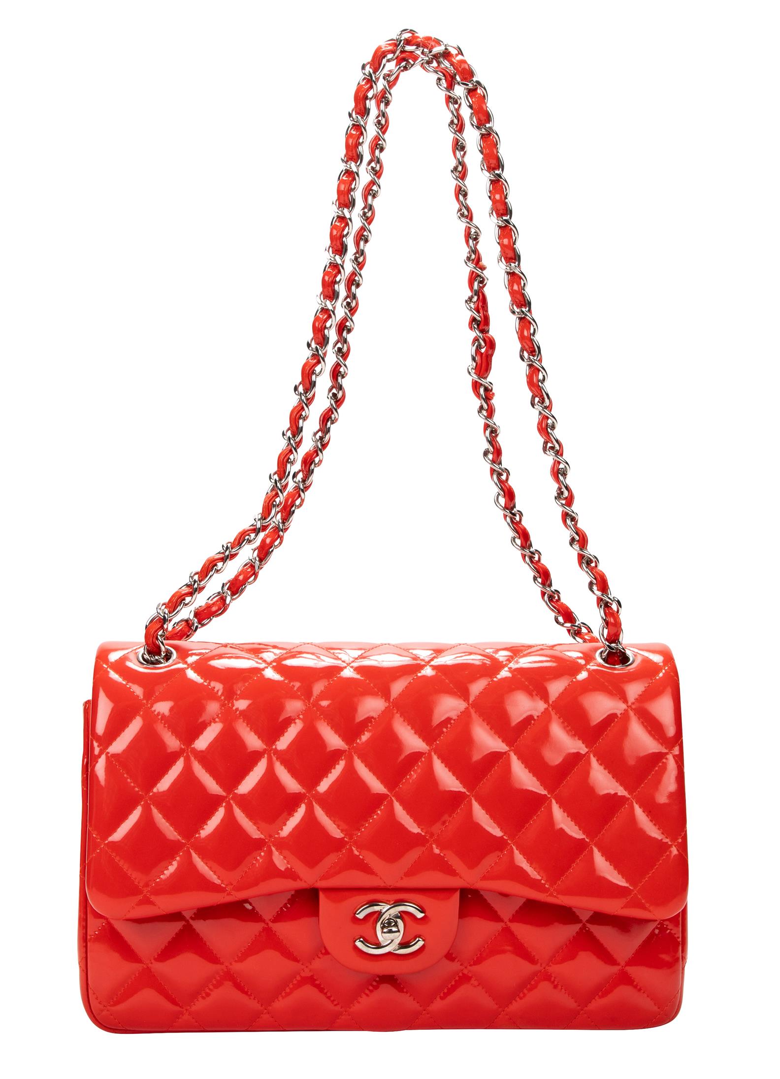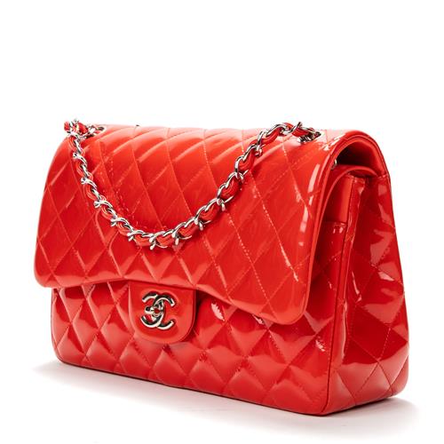 CHANEL, CLASSIC TRI-COLOUR DOUBLE FLAP BAG - Styled in red, navy and light blue quilted calf leather with interlaced chain shoulder...