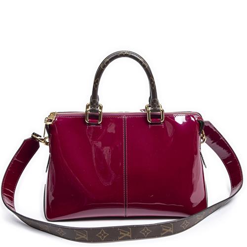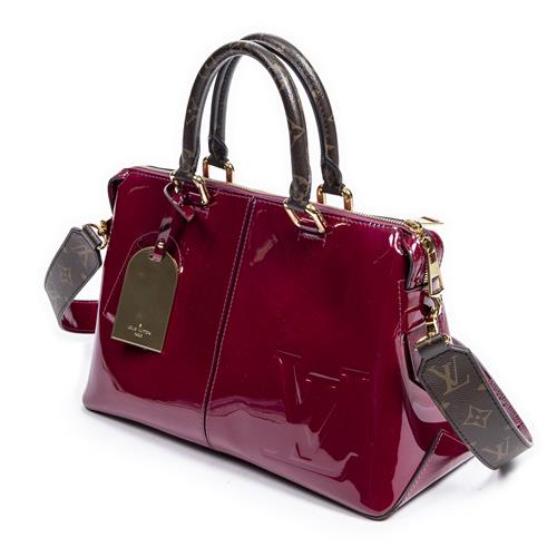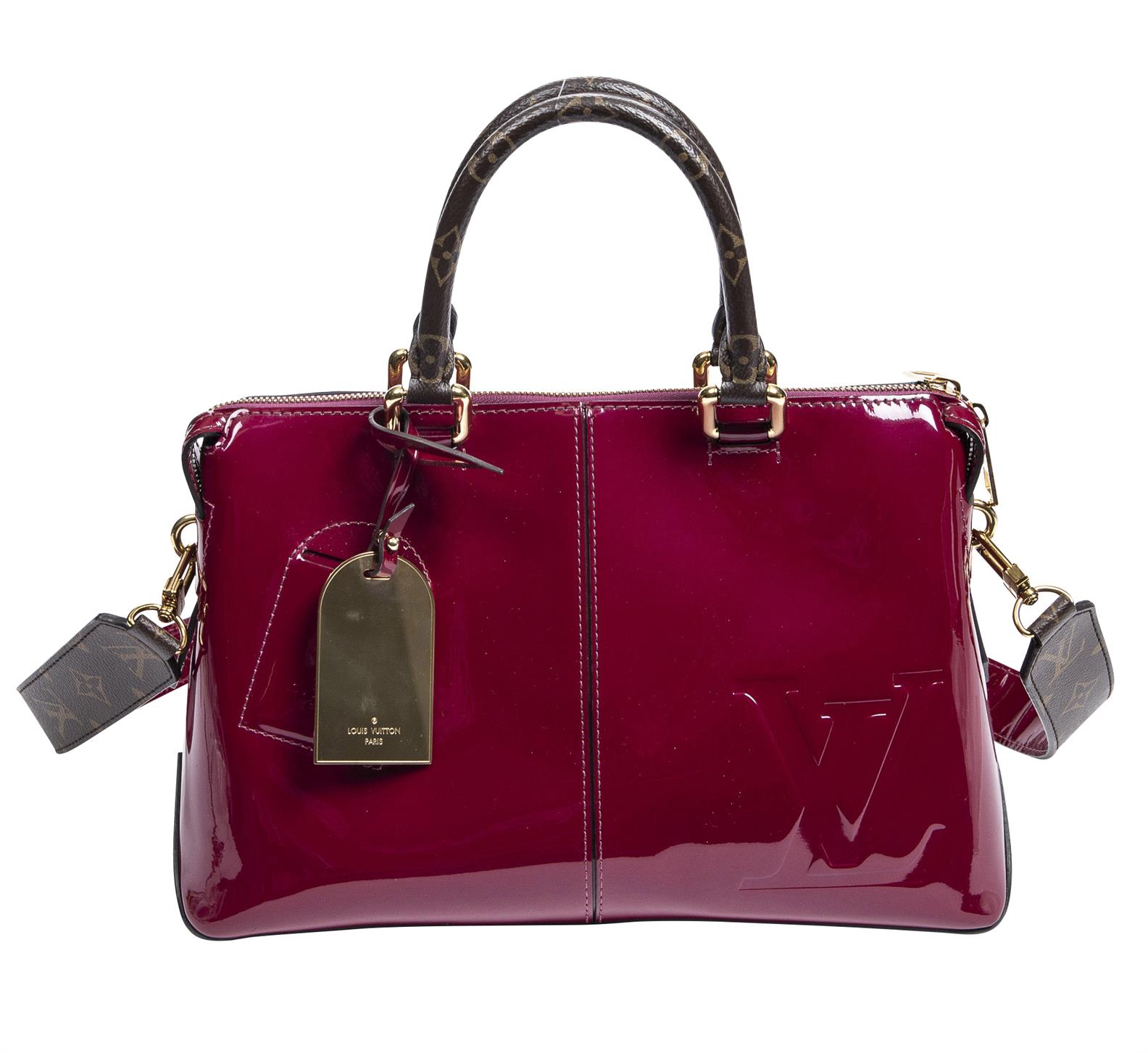 LOUIS VUITTON, MIRROR TOTE BAG - Styled in Magenta Vernis coated canvas with detachable shoulder strap and gold tone metal, 30 x 21 x 12cm.