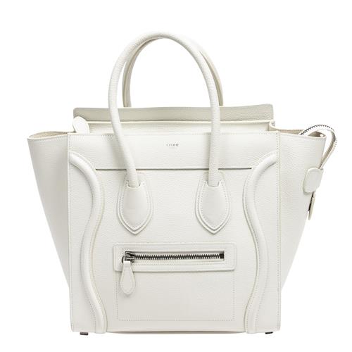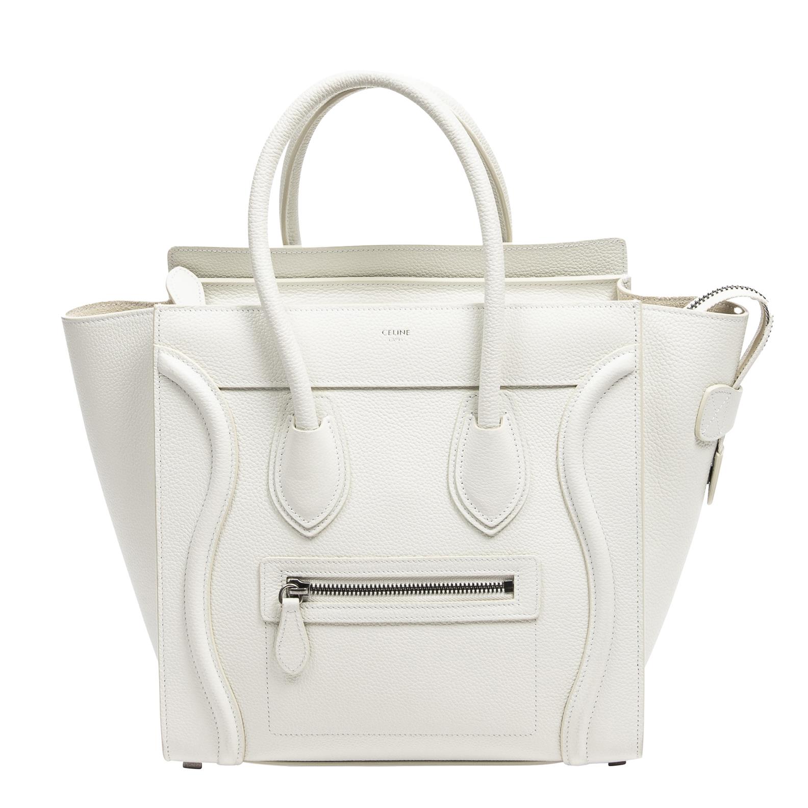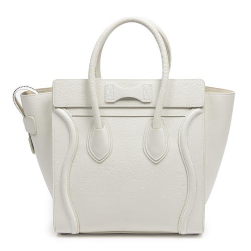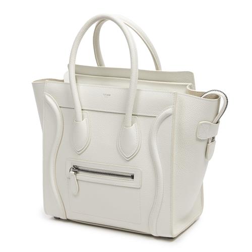 CÉLINE, MICRO LUGGAGE BAG - Styled in white textured leather with silver tone metal hardware, 26 x 26 x 14cm.
