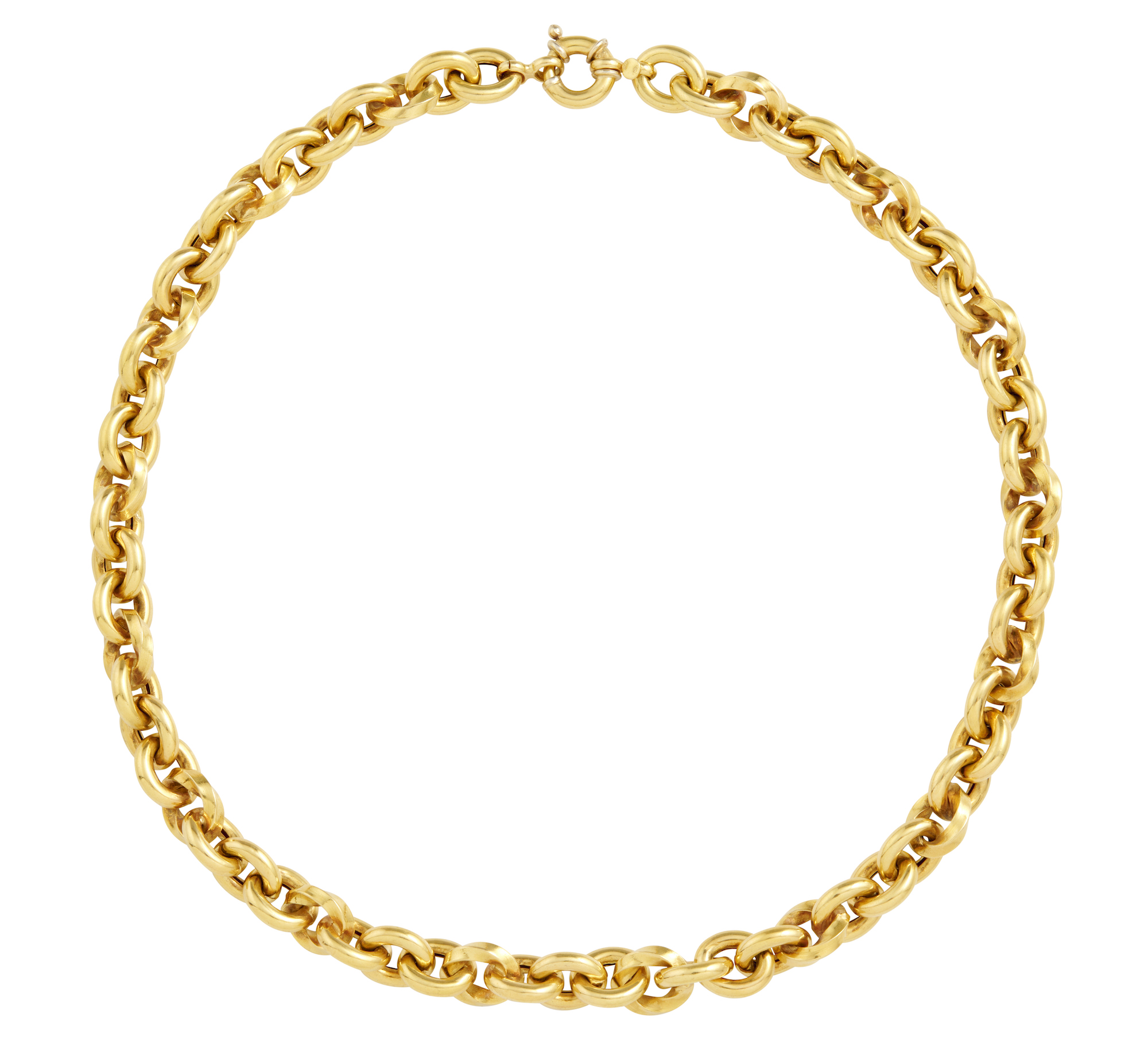 The belcher link chain, completed by a bolt ring clasp, length approximately 440mm.