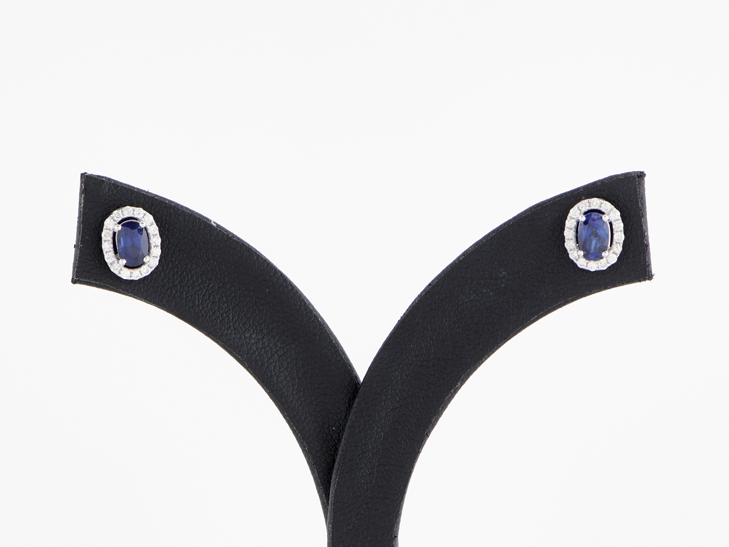 A PAIR OF SAPPHIRE AND DIAMOND EARRINGS IN 18CT WHITE GOLD TO POST AND BUTTERFLY FITTINGS, THE SAPPHIRES TOTALLING APPROXIMATELY 1.09CTS, THE DIAMONDS TOTALLING APPROXIMATELY 0.26CTS, SIZE 7.3 X 8.9MM, WEIGHT 2.6GMS