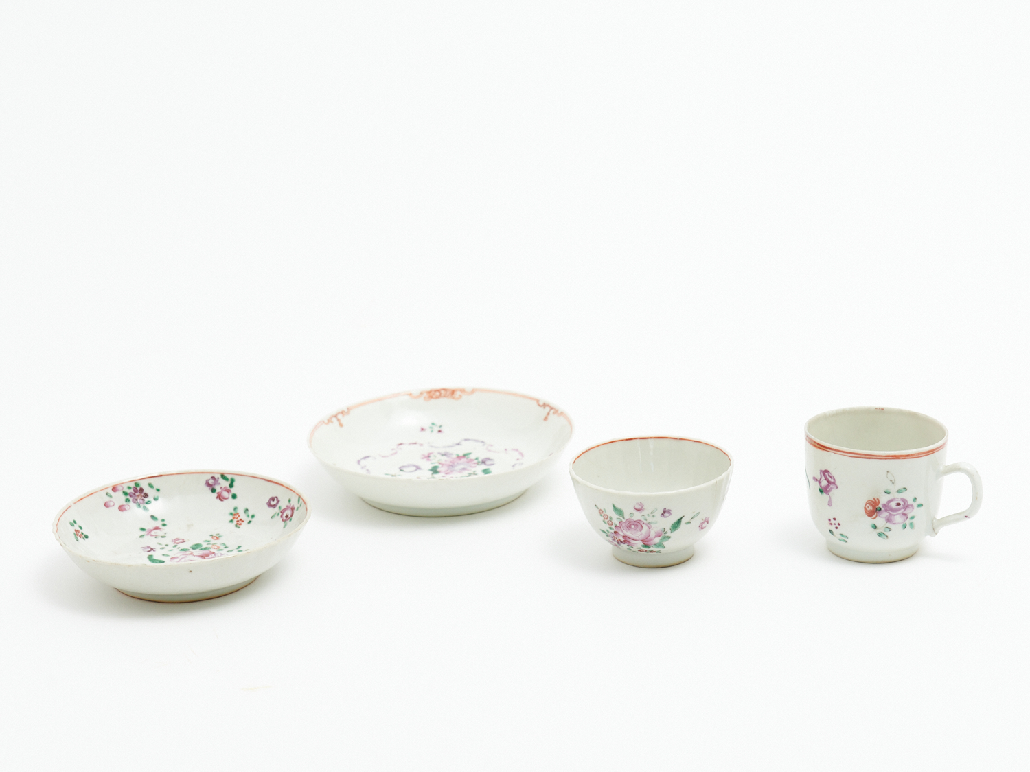 A GROUP OF PORCELAIN INCLUDING CHINESE EXPORT AND FAMILLE ROSE C.1780 DIA.13.5CM (LARGEST), LEONARD JOEL LOCAL DELIVERY: SMALL