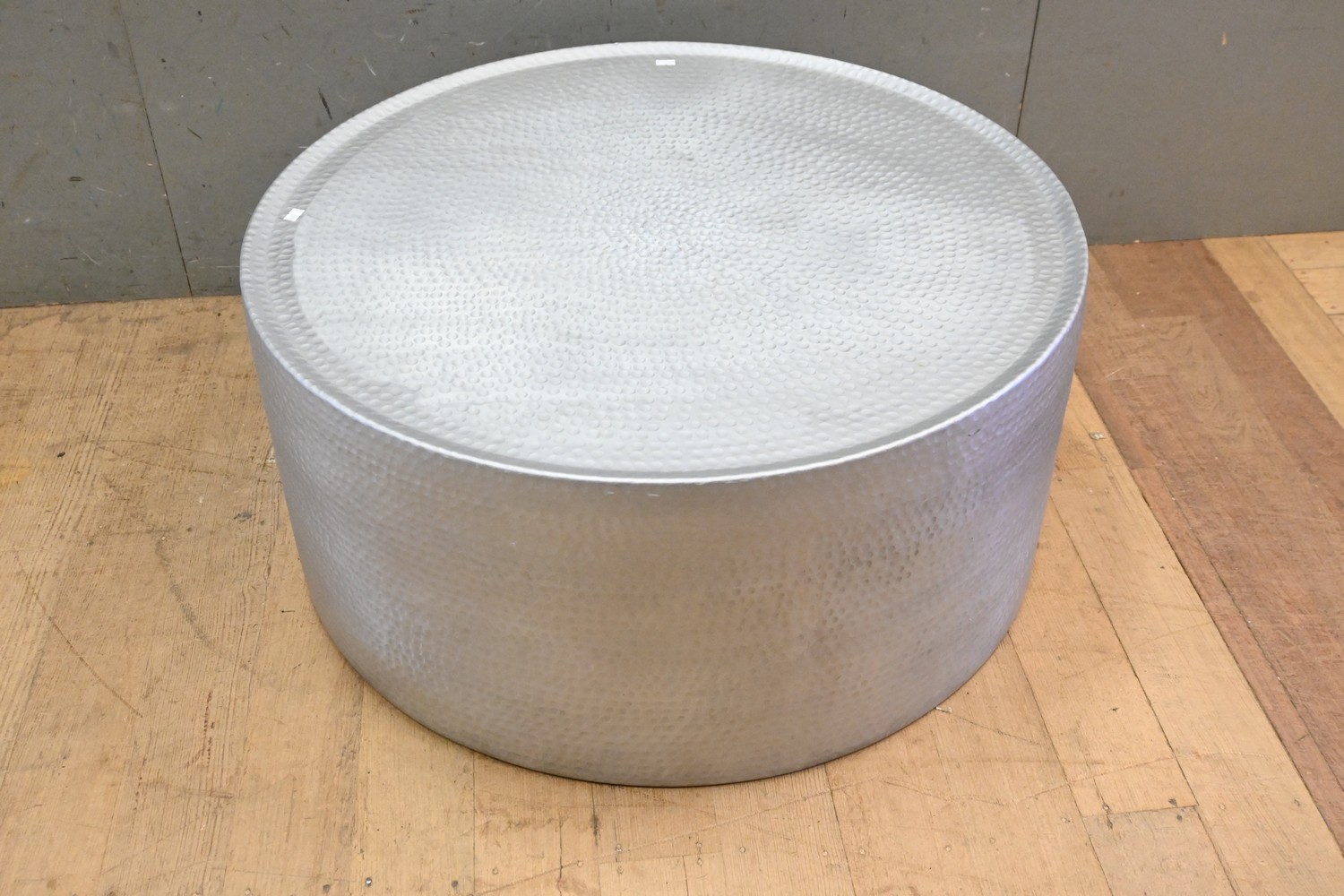 A METAL DIMPLED COFFEE TABLE ( 37H X 80 DIAMETER CM) (LEONARD JOEL DELIVERY SIZE: LARGE)
