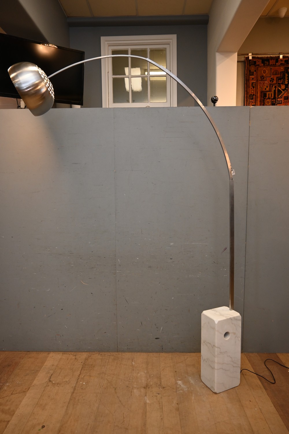 AN ARC STYLE LAMP ON MARBLE BASE (A/F) (233H CM) (PLEASE NOTE THIS HEAVY ITEM MUST BE REMOVED BY CLIENTS OR CARRIERS AT THE CUSTOMERS EXPENSE. LEONARD JOEL STAFF CANNOT ASSIST CARRYING THIS ITEM)
