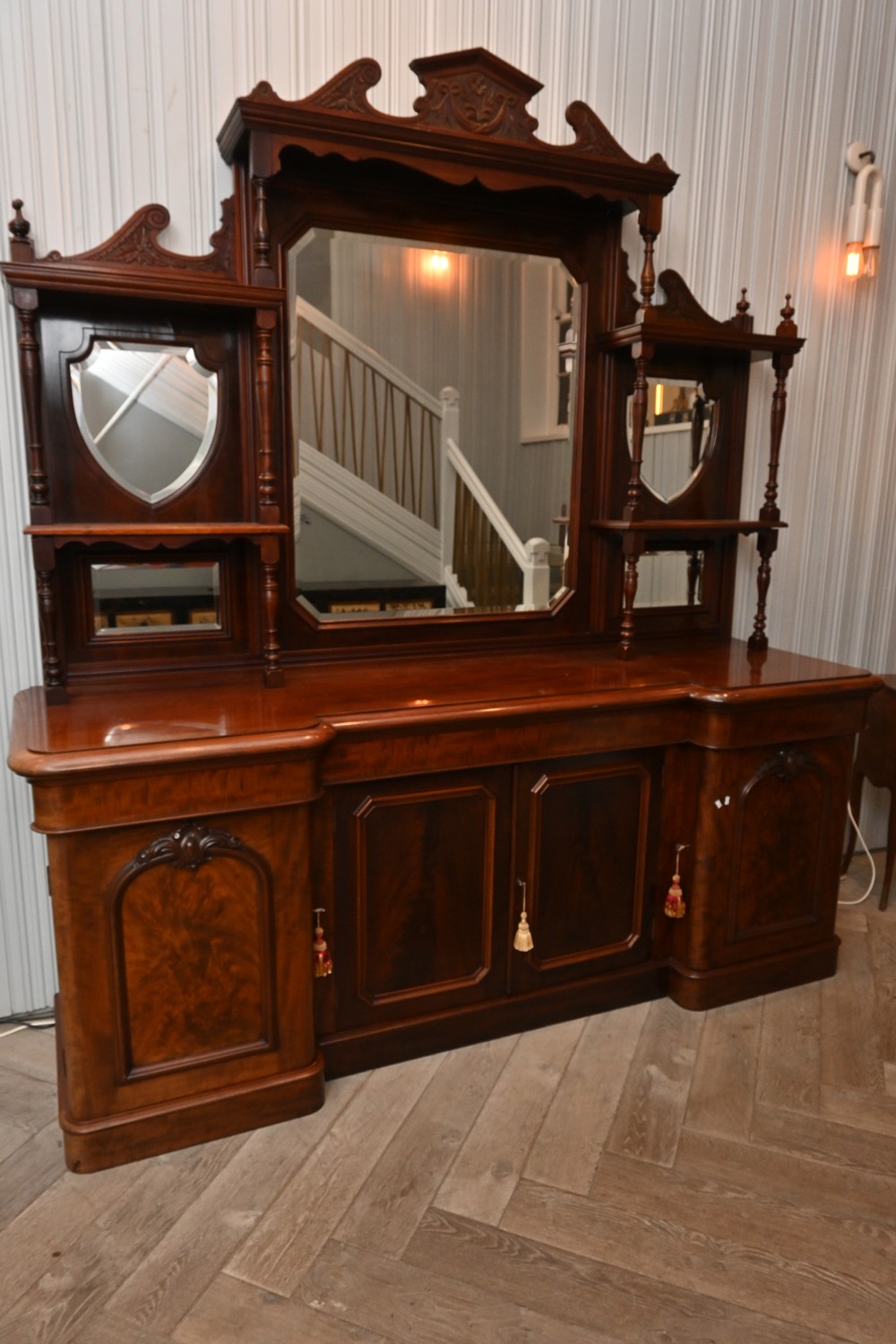 A SUBSTANTIAL VICTORIAN MAHOGANY MIRROR-BACK SIDEBOARD (A/F) (250H X 230W X 68D CM) (PLEASE NOTE THIS HEAVY ITEM MUST BE REMOVED BY CLIENTS OR CARRIERS AT THE CUSTOMERS EXPENSE. LEONARD JOEL STAFF CANNOT ASSIST CARRYING THIS ITEM)