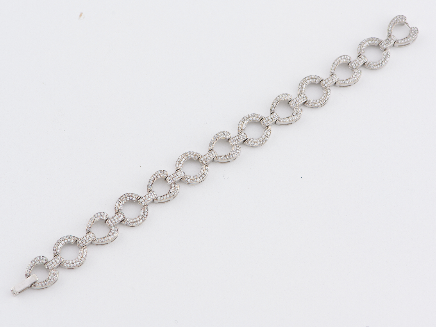 A CUBIC ZIRCONIA SET VINTAGE DECO STYLED BRACELET IN STERLING SILVER, APPROXIMATE SIZE 13MM X 190MM