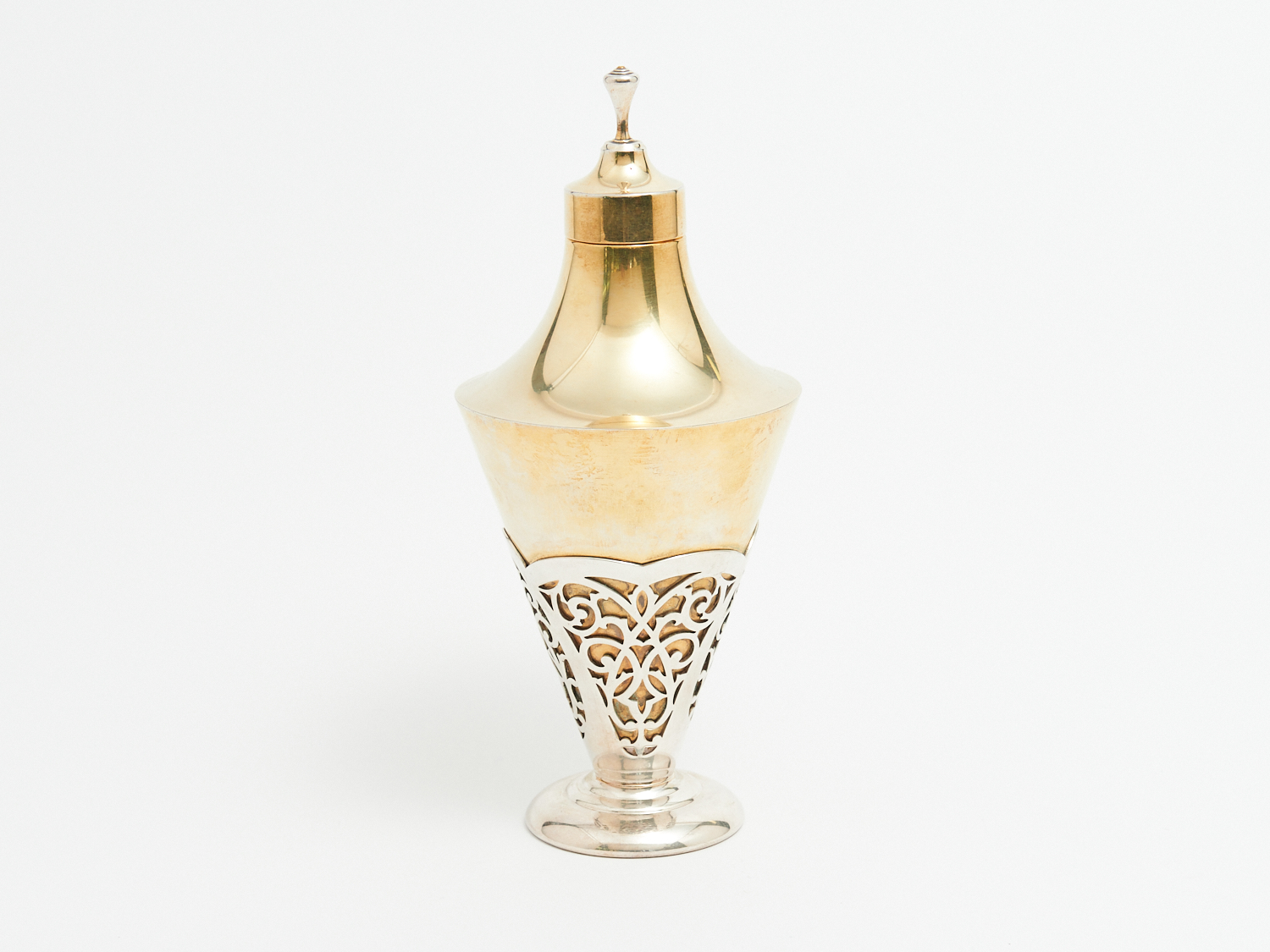 A SILVER PLATE AND BRASS COCKTAIL SHAKER H.28CM, LEONARD JOEL LOCAL DELIVERY: SMALL