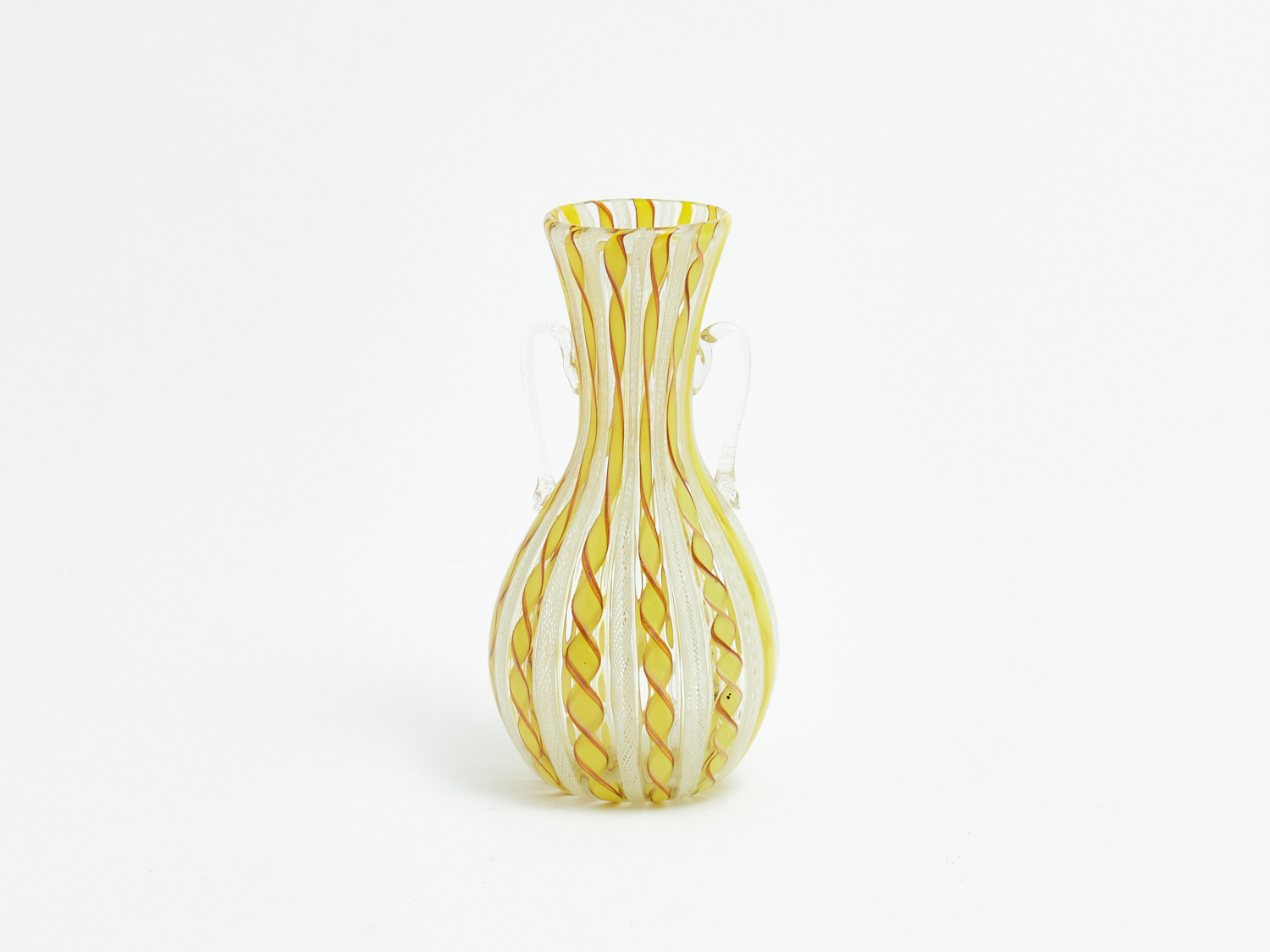 A MURANO GLASS LATTICINO TWIN HANDLE VASE H.16CM, LEONARD JOEL LOCAL DELIVERY: SMALL