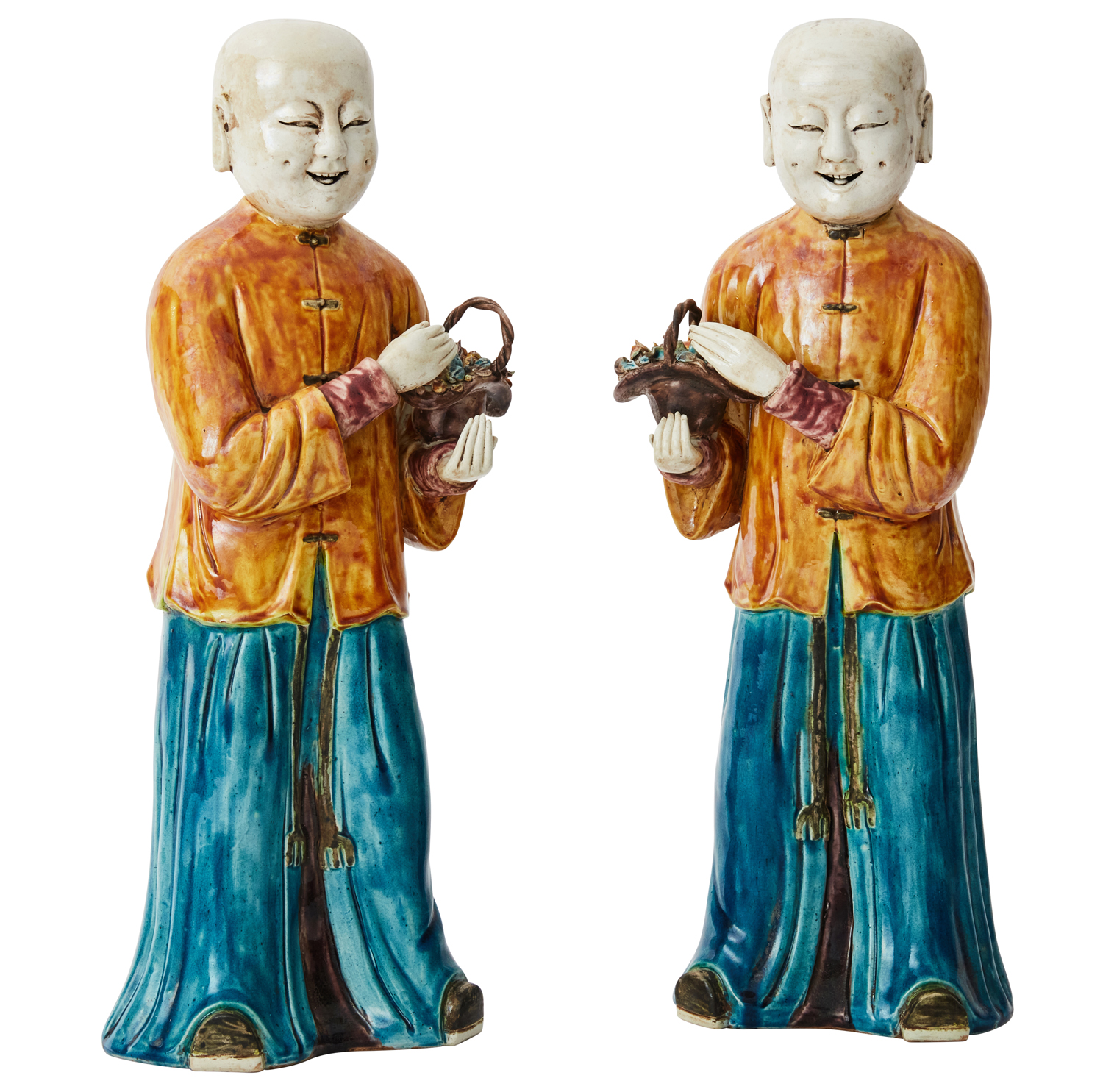 Qing Dynasty, each wearing a yellow jacket and blue skirt.