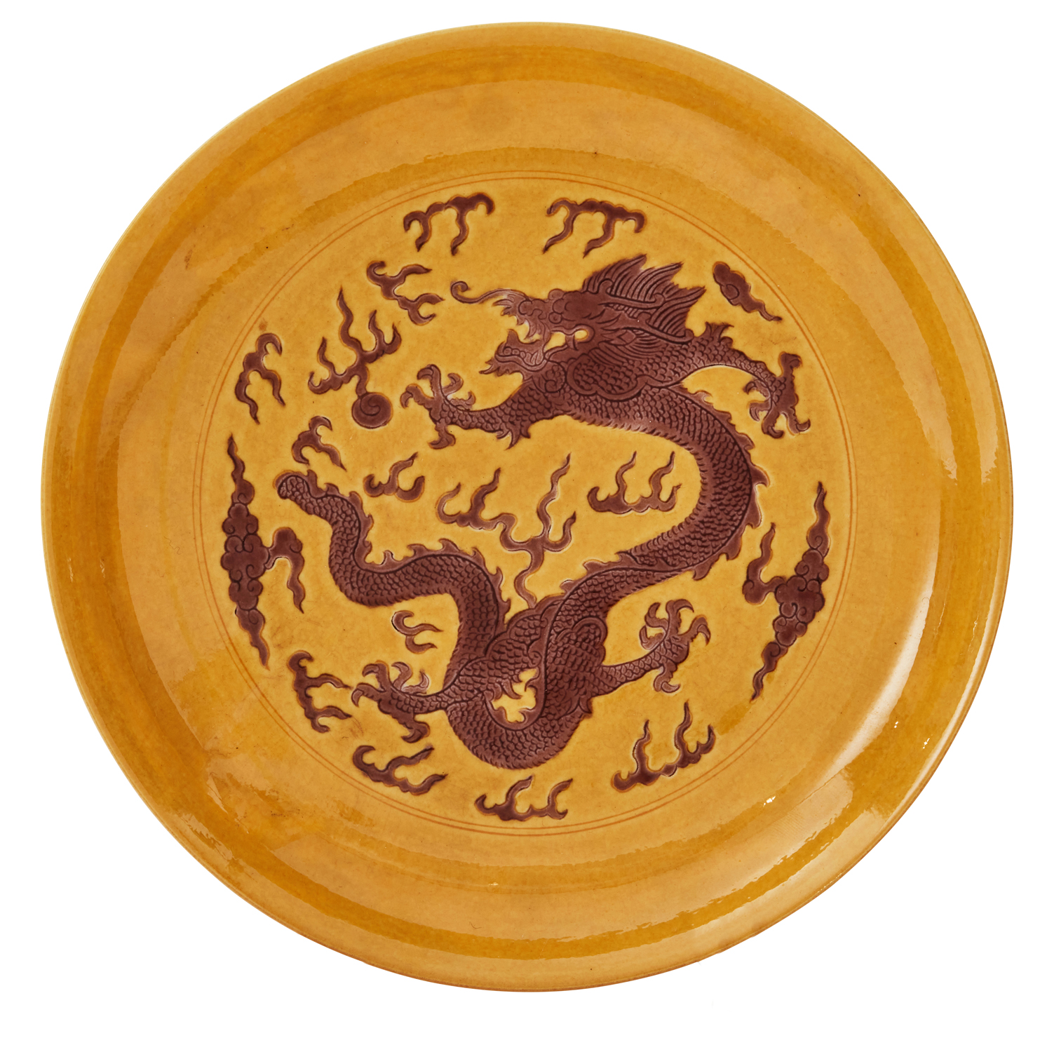 Incised to the centre with a dragon chasing a flaming pearl, bearing six character Kangxi mark to base.