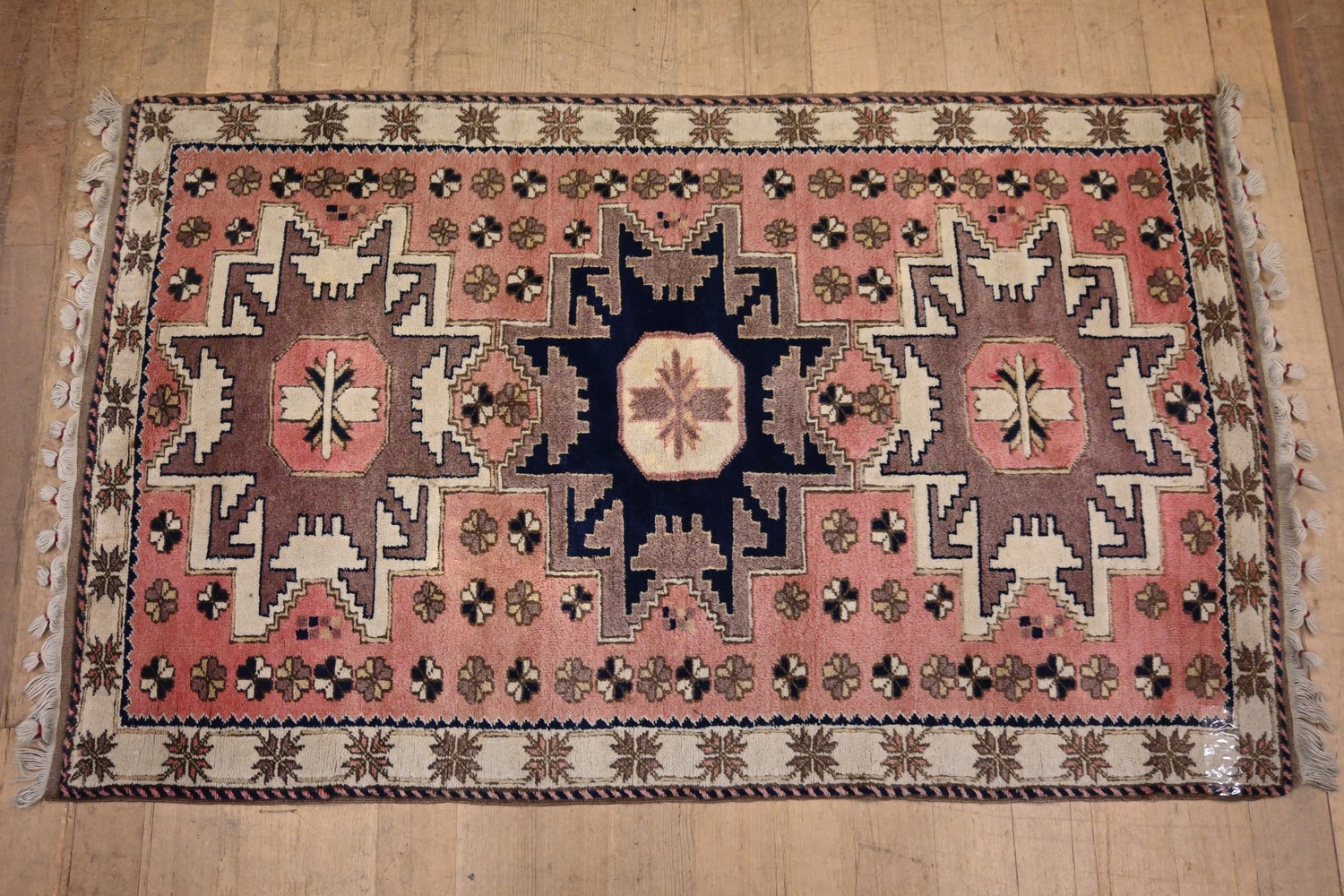 A HANDMADE TRIPLE MEDALLION PERSIAN RUG (A/F) ( 185 X 106 CM) (LEONARD JOEL DELIVERY SIZE: LARGE)