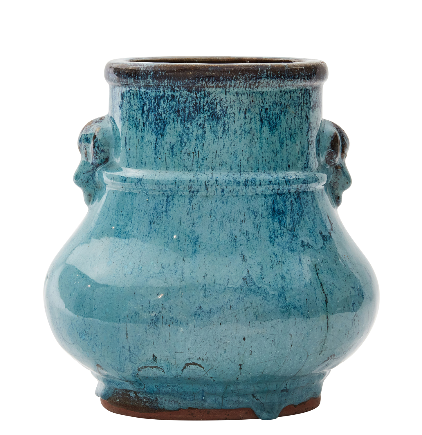 20th century, with thick peacock blue glaze, impressed seal mark to underside.