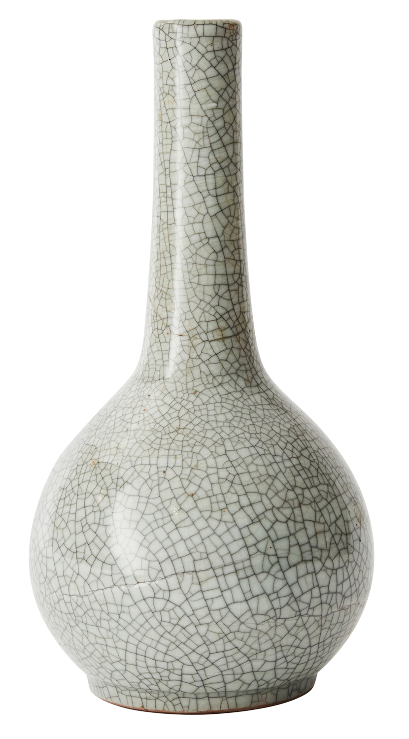 Qing Dynasty (1644-1912), circa 1900, of bottle form with a densely crackled pale blue glaze.