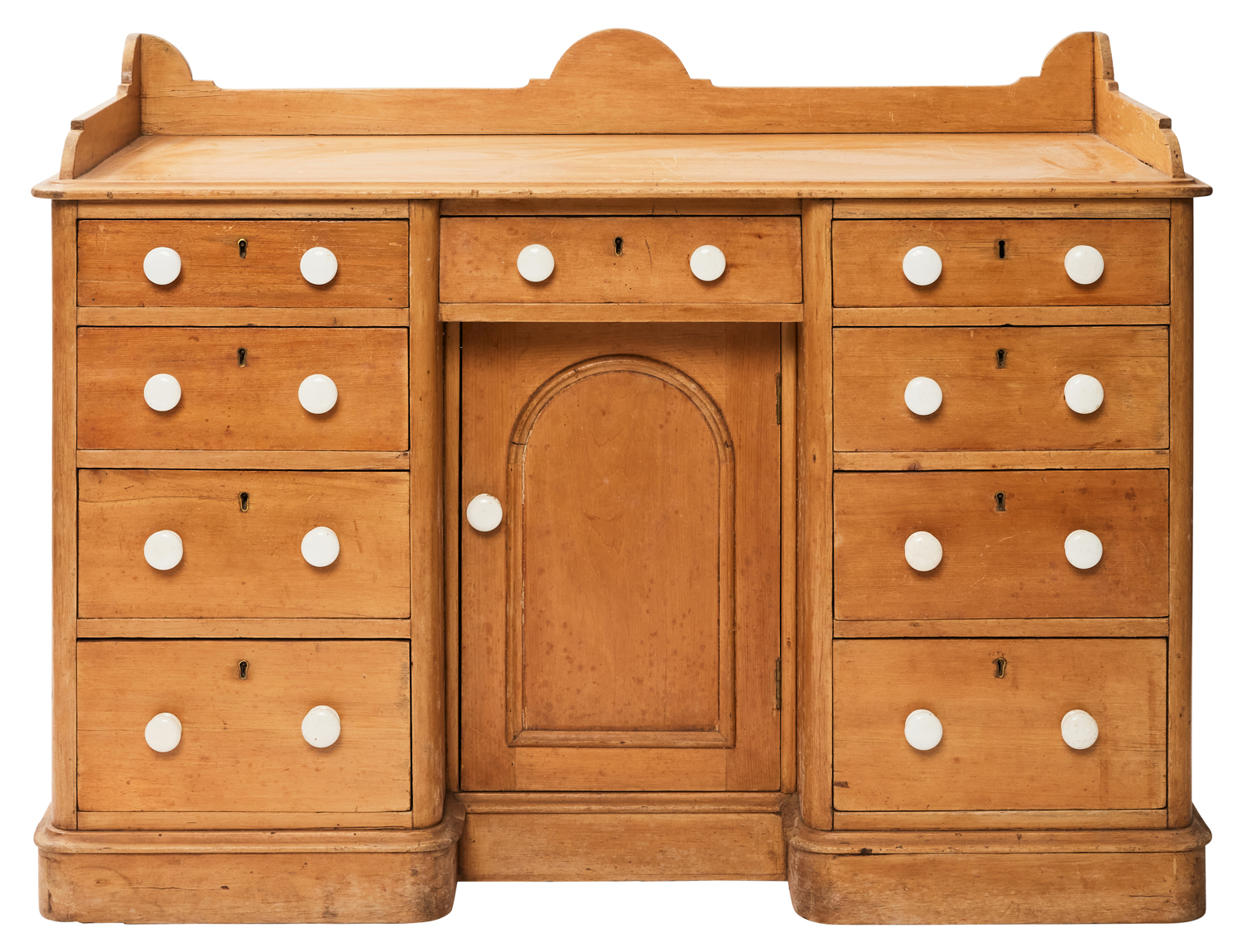A VICTORIAN STRIPPED PINE KNEEHOLE DESK