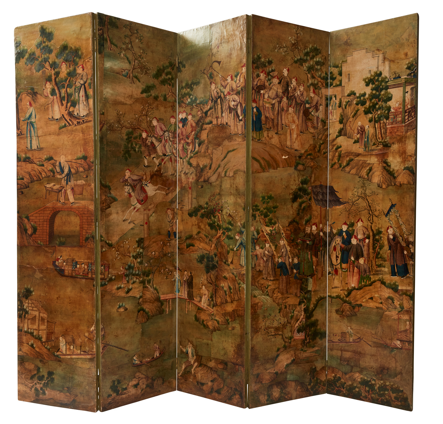 Old splits to sections of the paper, yellowed varnish overall, losses.