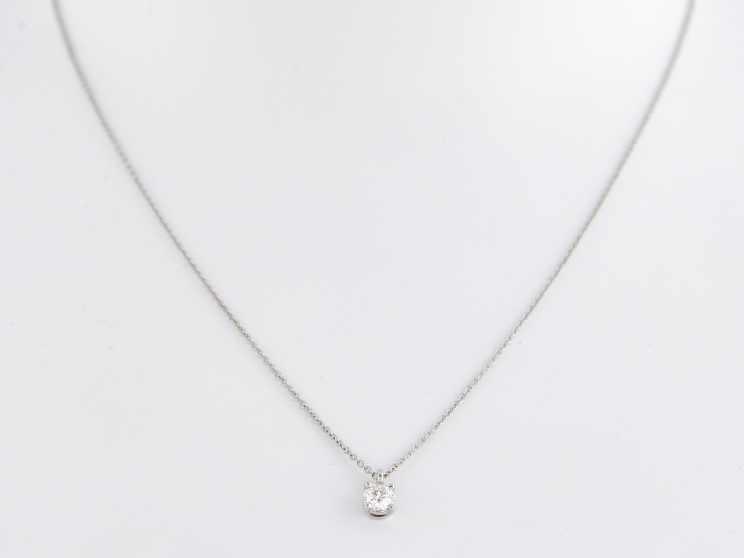 A DIAMOND SOLITAIRE PENDANT OF 0.30CTS IN PALTINUM BY TIFFANY & CO., TO A FINE TRACE CHAIN IN PLATINUM, ACCOMPANIED BY A TIFFANY & CO. BOX AND DIAMOND CERTIFICATE NUMBERED 21154628/G03160300 STATING THE 0.30CT DIAMOND IS I COLOUR, VVS1 CLARITY