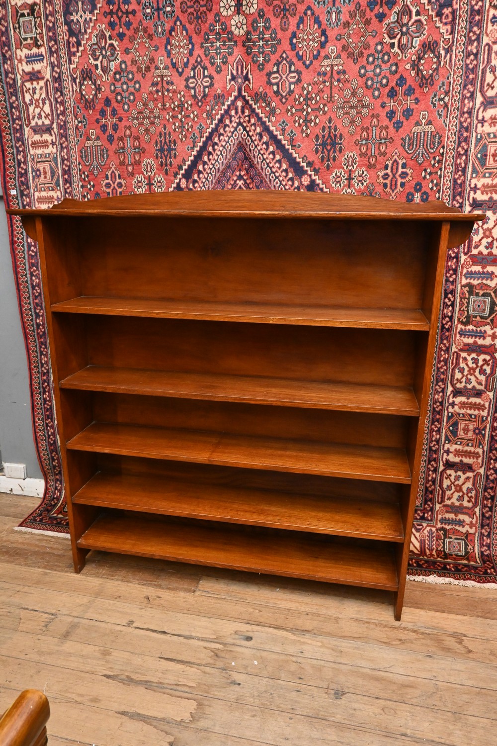 AN ARTS AND CRAFTS VICTORIAN ASH FIVE TIER OPEN BOOKSHELF (A/F) (H153 X W153 X D26 CM) (PLEASE NOTE THIS HEAVY ITEM MUST BE REMOVED BY CLIENTS OR CARRIERS AT THE CUSTOMERS EXPENSE. LEONARD JOEL STAFF CANNOT ASSIST CARRYING THIS ITEM)