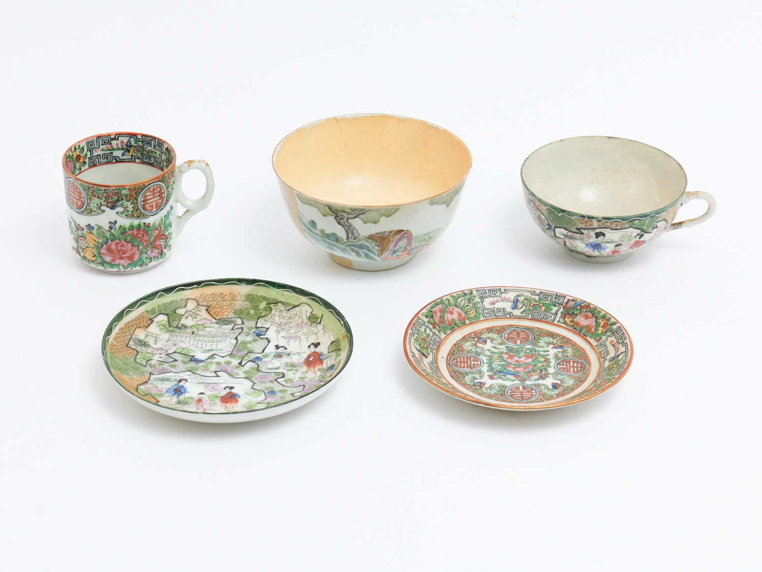A GROUP OF JAPANESE AND CHINESE TEA CUPS AND SAUCERS, 19TH CENTURY, AND BOWL (A/F), LEONARD JOEL LOCAL DELIVERY: SMALL