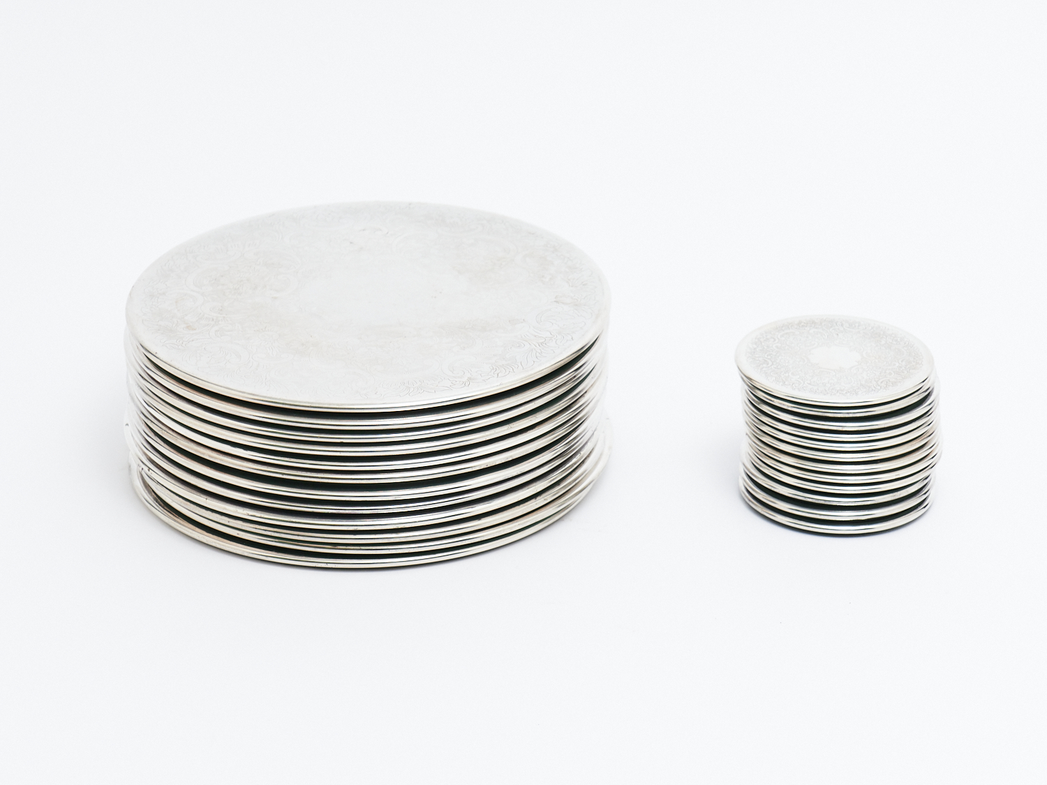 SET OF 12 STRACHAN SILVERPLATED PLACEMATS AND DRINK COASTERS DIA.20.5 CM, LEONARD JOEL LOCAL DELIVERY: SMALL