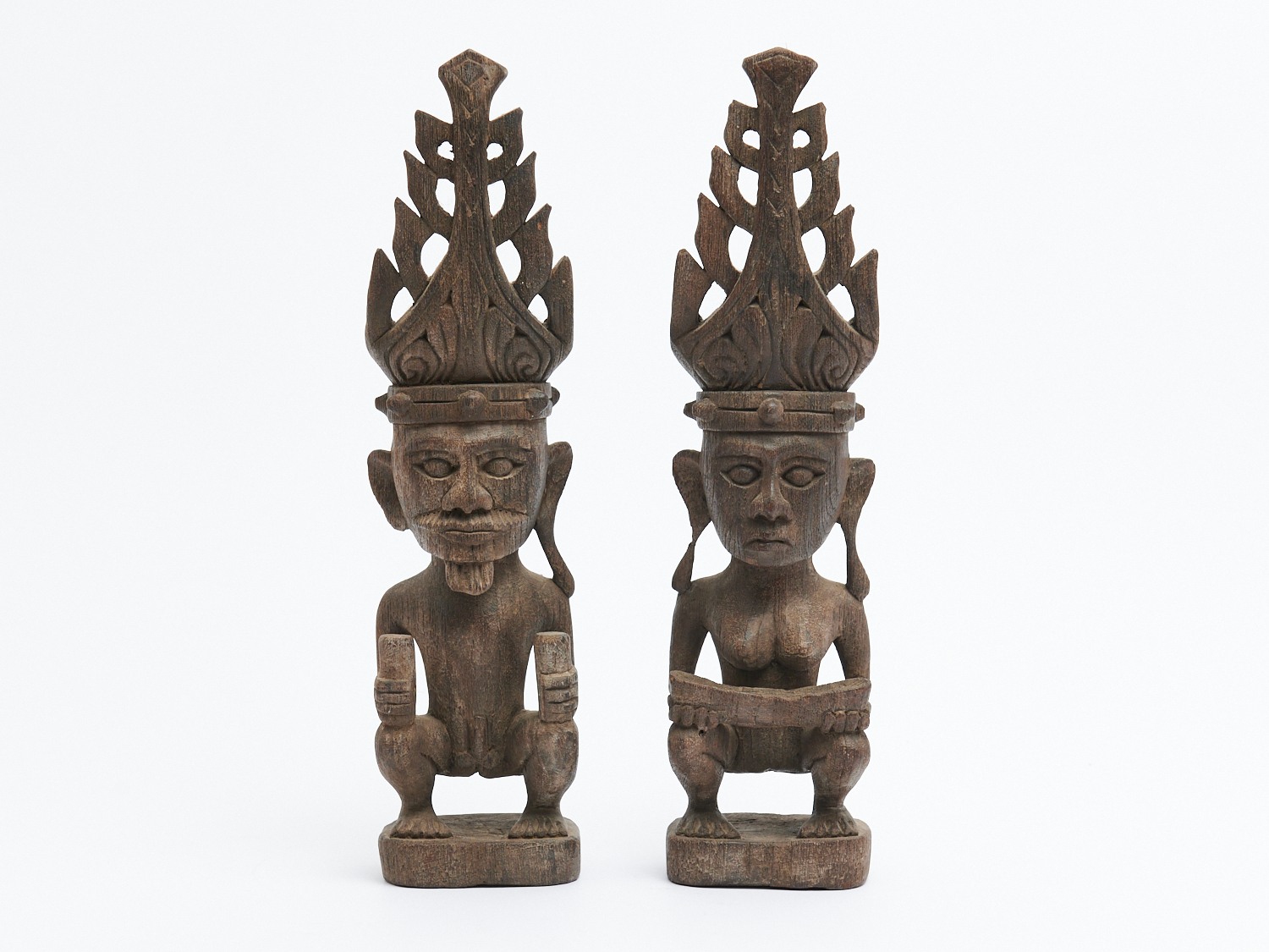 A PAIR OF INDONESIAN CARVINGS H.34.5CM (TALLEST), LEONARD JOEL LOCAL DELIVERY: SMALL