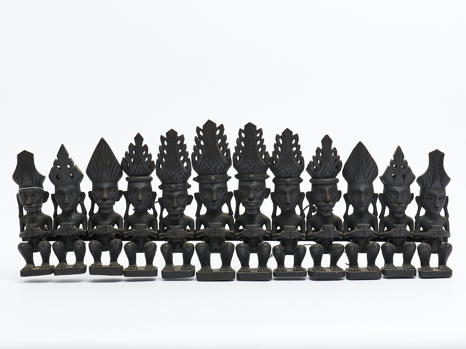 CARVED WOOD TWELVE WARRIORS STATUE, NIAS H.26CM X W.71CM, LEONARD JOEL LOCAL DELIVERY: MEDIUM