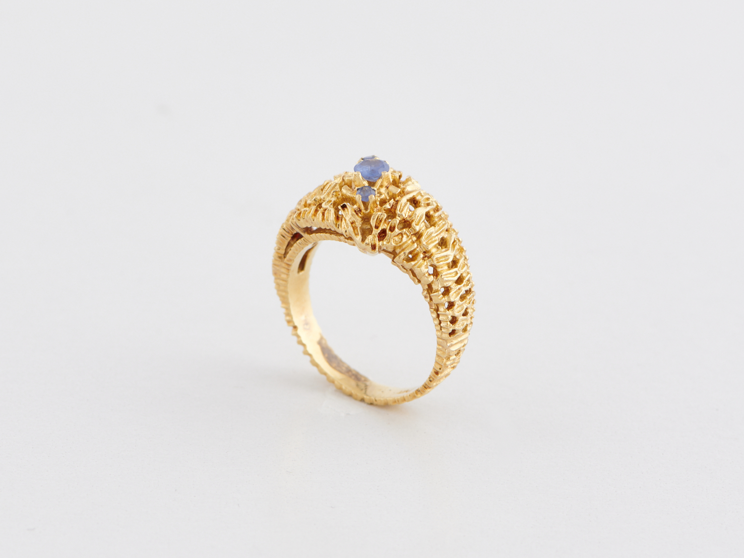 A SAPPHIRE RING IN 18CT GOLD, RING SIZE M, 7.39GMS