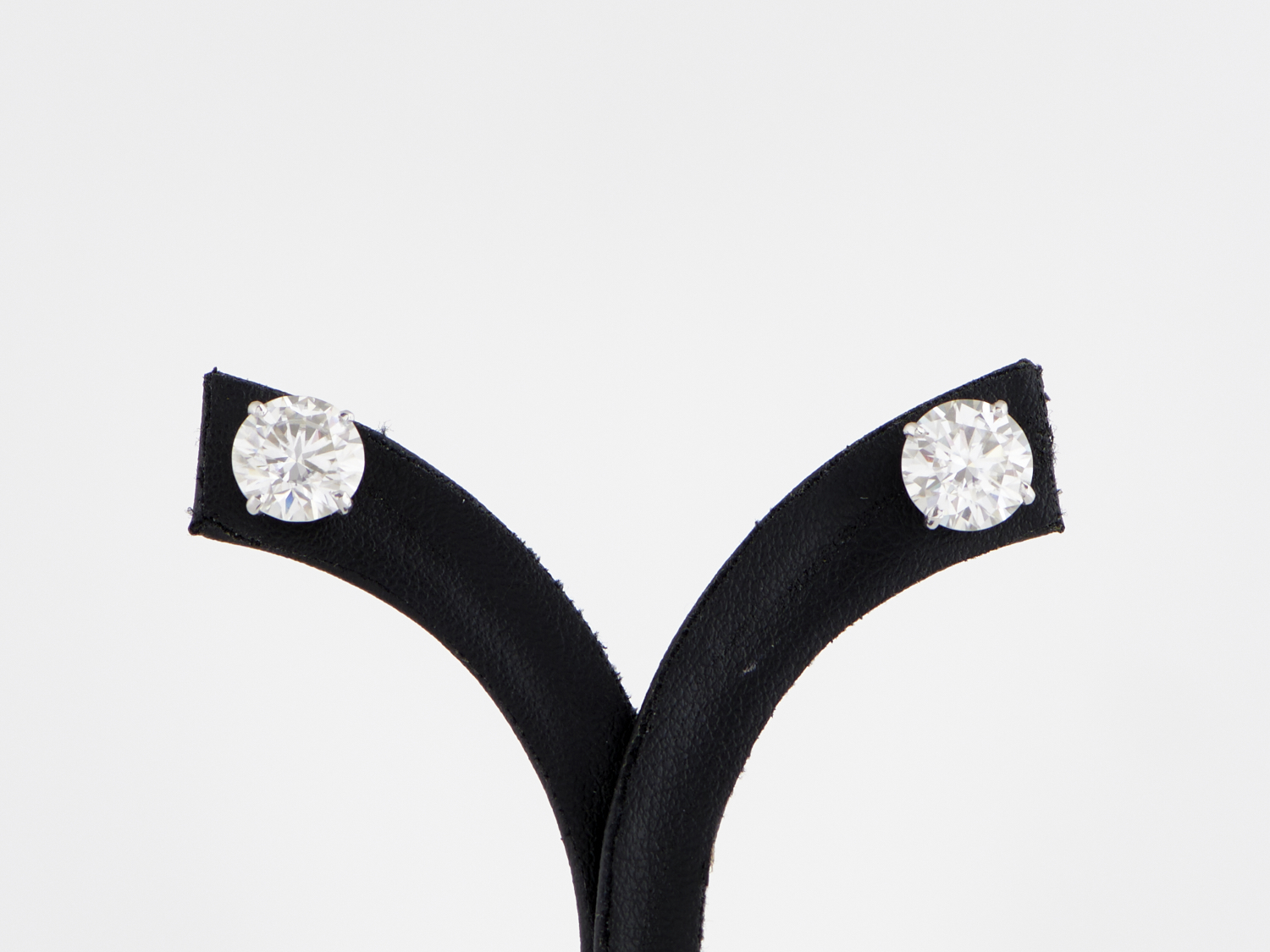 A PAIR OF MOISSANITE SET EARRINGS IN 18CT WHITE GOLD, TO POST AND BUTTERFLY FITTINGS, APPROXIMATE MOISSANITE WEIGHT 5.04CTS, APPROXIMATE DIAMETER 9MM, APPROXIAMTE WEIGHT 2.68GMS