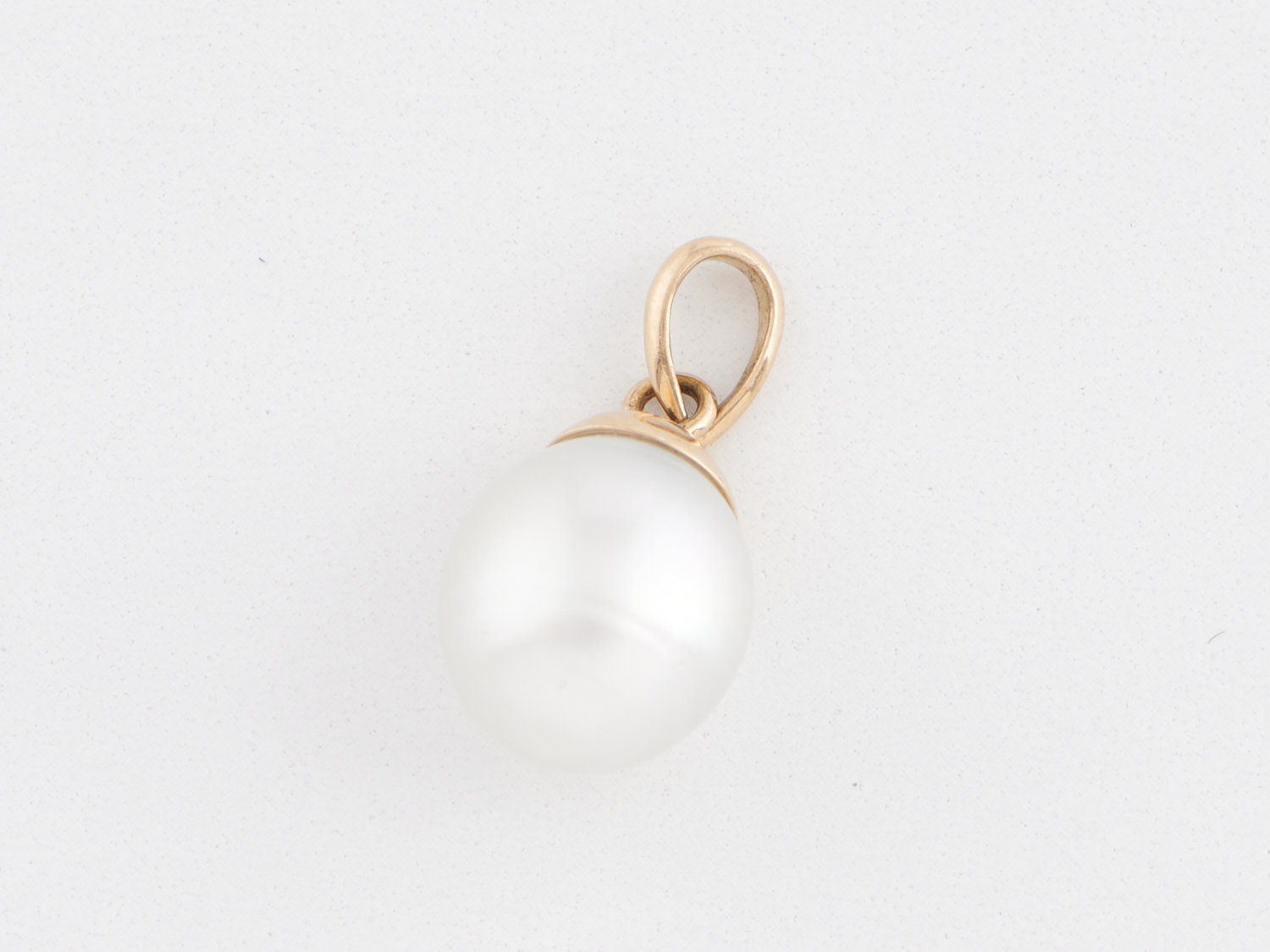 AN AUSTRALIAN SOUTH SEA PEARL PENDANT TO A BAIL IN 18CT GOLD, THE PEARL MEASURING 12MM