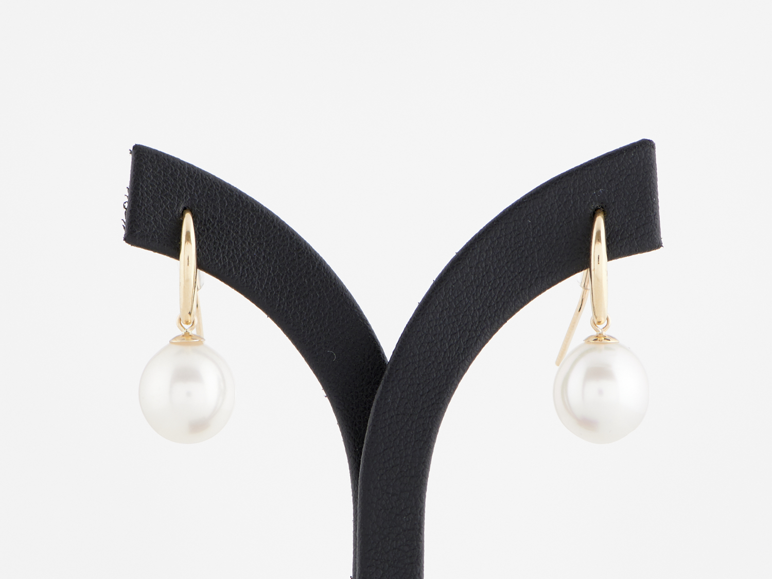 A PAIR OF AUSTRALIAN SOUTH SEA EARRINGS TO SHEPHERDS HOOK FITTINGS IN 9CT GOLD, THE PEARLS MEASURING 10MM