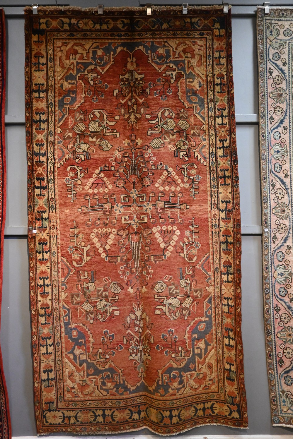 A MAGNIFICENT PERSIAN NAHAVAND RUG, 100% WOOL DENSE PILE, NATURAL DYES. HAND-KNOTTED VILLAGE WEAVE WITH A DESIGN OF ALL OVER TREE OF LIFE, VARYING FLORAL AND GEOMETRIC MOTIFS IN AUTUMNAL MELLOW TONES. BORDER OF ROSETTES AND TRIBAL MOTIFS. SOME NATURAL ABRASH. SIZE: 300 X 150 CM ORIGIN: PERSIA - RRP: $3,300 DOCUMENTATION OF AUTHENTICITY INCLUDED.